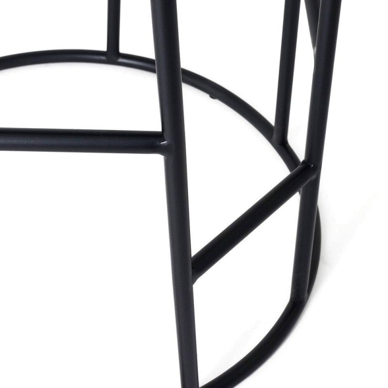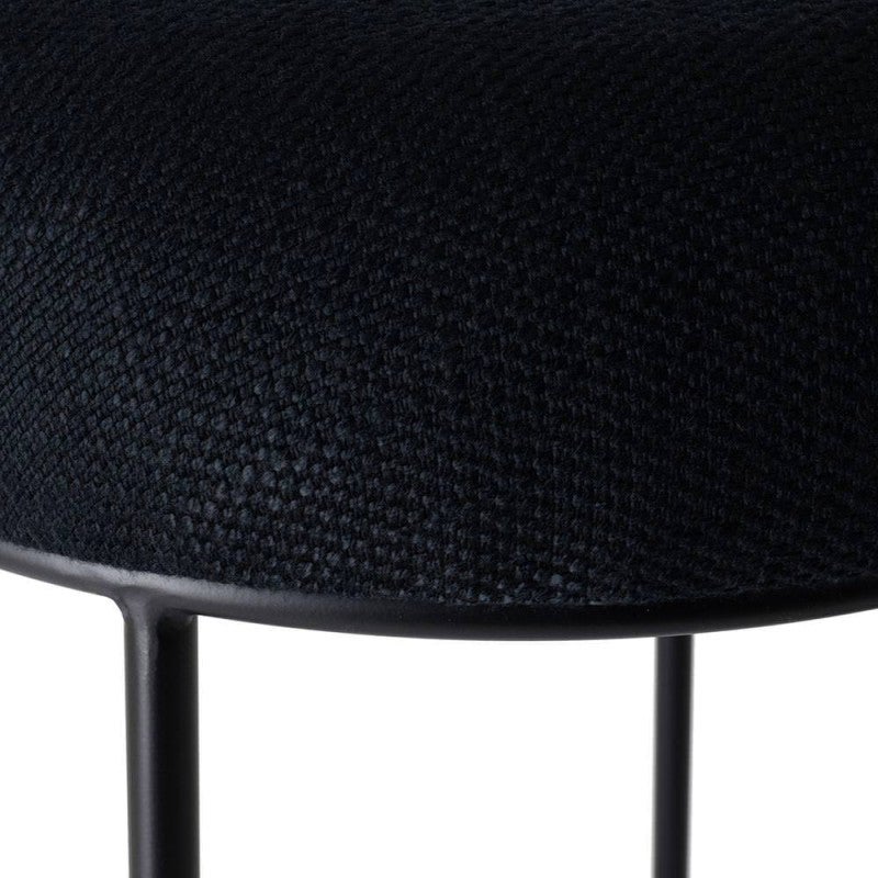 The Aiden Black Steel Bar Stool – Black Linen offers a modern seating solution with a streamlined silhouette and thoughtful functionality. Crafted with a durable black iron frame and a cushioned round seat in black linen, it stands at 76cm tall, ideal for bar counters or kitchen islands. A fixed footrest at 25cm from the ground adds comfort. Part of the Aiden range, a matching Aiden Kitchen Stool version provides the same sleek style and support, perfect for dining areas in contemporary interiors. Maximum weight load: 136kg.