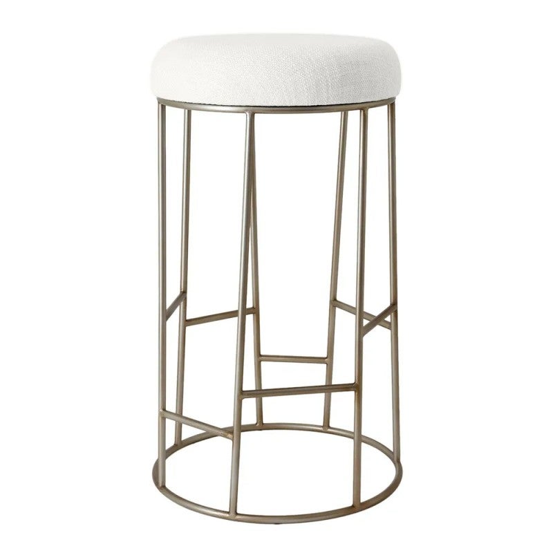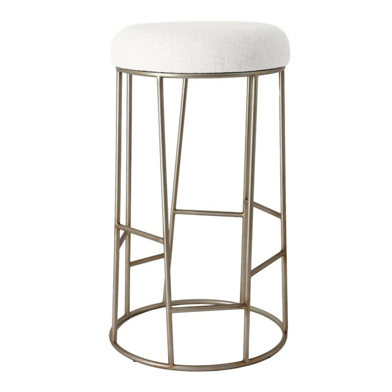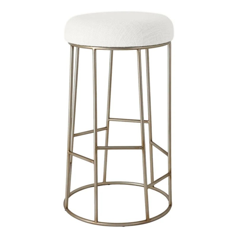 Elevate your contemporary space with the Aiden Gold Steel Bar Stool, a masterpiece of understated luxury from the Aiden range. Its plush round seat, upholstered in natural linen blend, offers comfort at the ideal height for kitchen counters or bar tables, available in gold-finished steel or bold black linen. The minimalist frame with a circular footrest adds refined elegance, supporting up to 150kg with no assembly required. This Aiden gold steel bar stool transforms your home with timeless style and modern functionality.