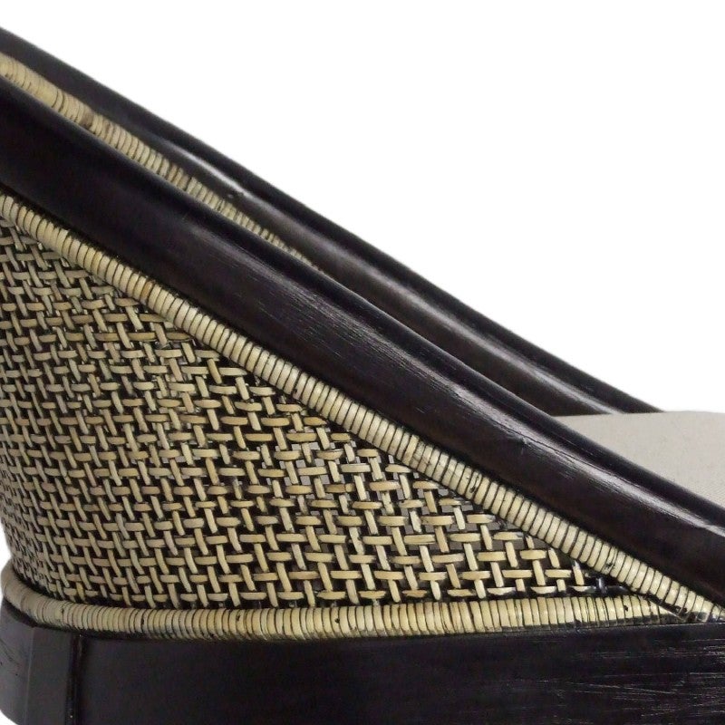 - Mindi Wood Timber, Rattan, Fabric (42% Polyester / 29% Cotton / 29% Linen), Foam