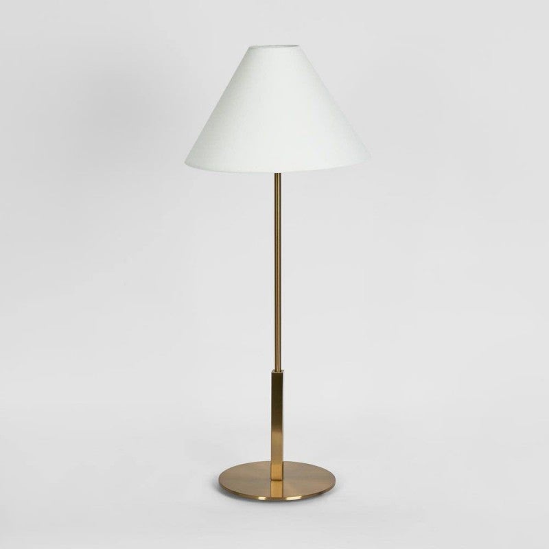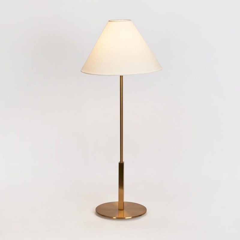 - Base: Brass; Shade: Fabric