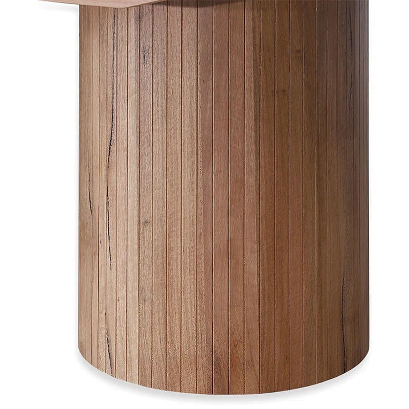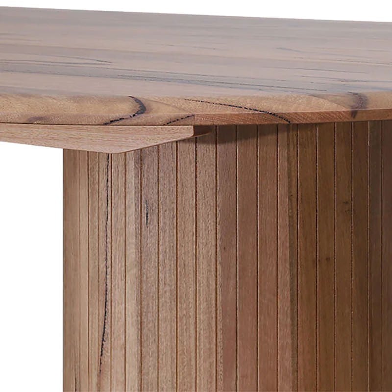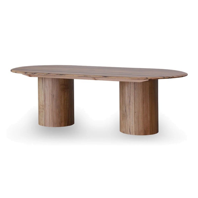 Experience the raw beauty of Australian solid marri wood, characterized by its unique grains, cracks and splits, lending each piece a unique charm. To elevate the finish to a high-grade standard, our artisans utilize a premium clear epoxy resin, meticulously applied to fill larger knots and grain-related imperfections, resulting in an exceptionally smooth surface.
