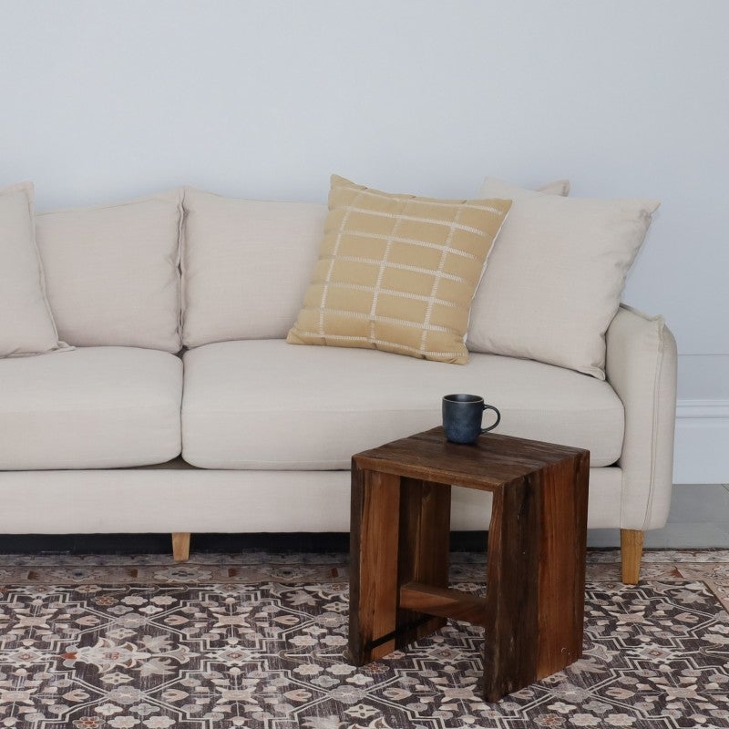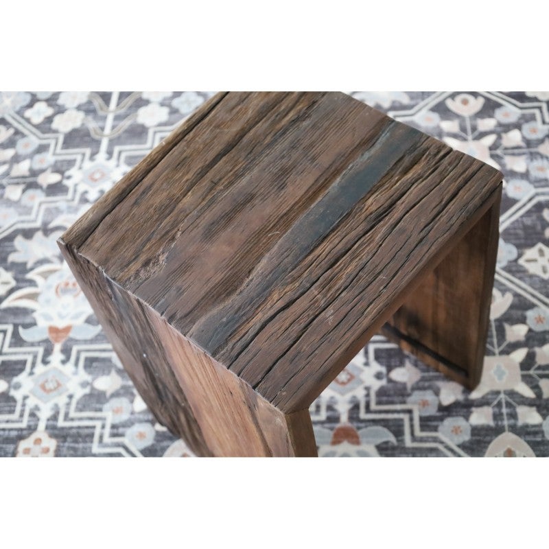 Sleek and modern design with clean lines, perfect for contemporary interiors. Compact and stylish, ideal for adding a touch of sophistication to any space. Made from reclaimed wood. Multi-purpose design suitable as a side table, bedside table, or accent piece. Spacious top for holding books, lamps, beverages, or decorative items. A perfect blend of style and functionality for any room in your home. Wipe clean with a damp cloth to maintain its pristine look. Avoid exposure to excessive moisture or direct sunlight for longevity.