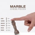- Board: 30cm W x 30cm D; King: 8.9cm H; Queen: 7.6cm H; Bishop: 7cm H; Knight: 7cm H; Rook: 7cm H; Pawn: 5.7cm H