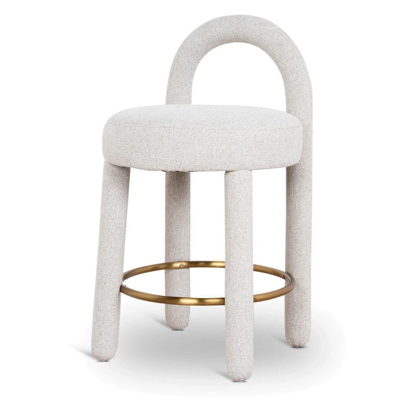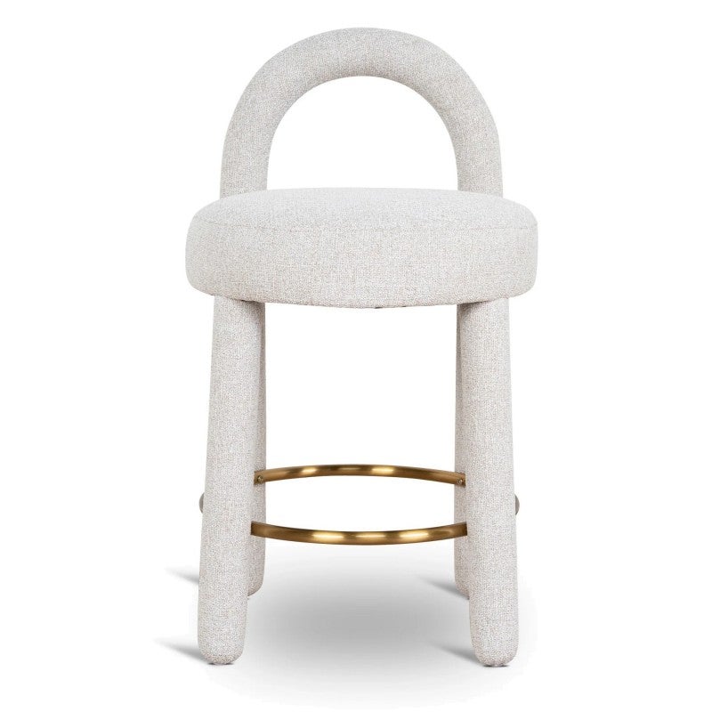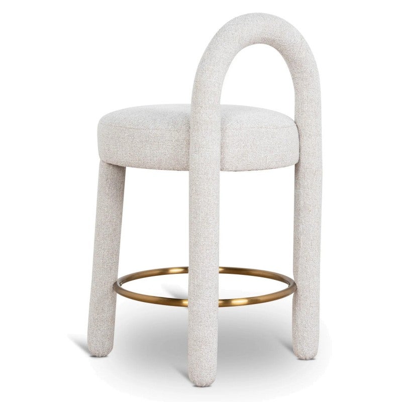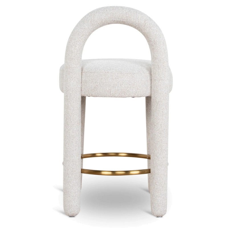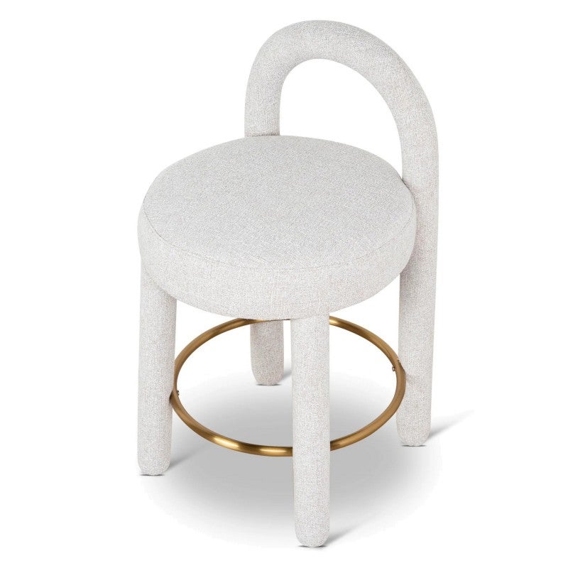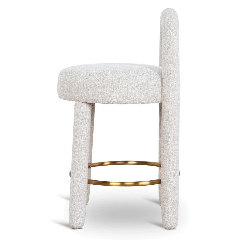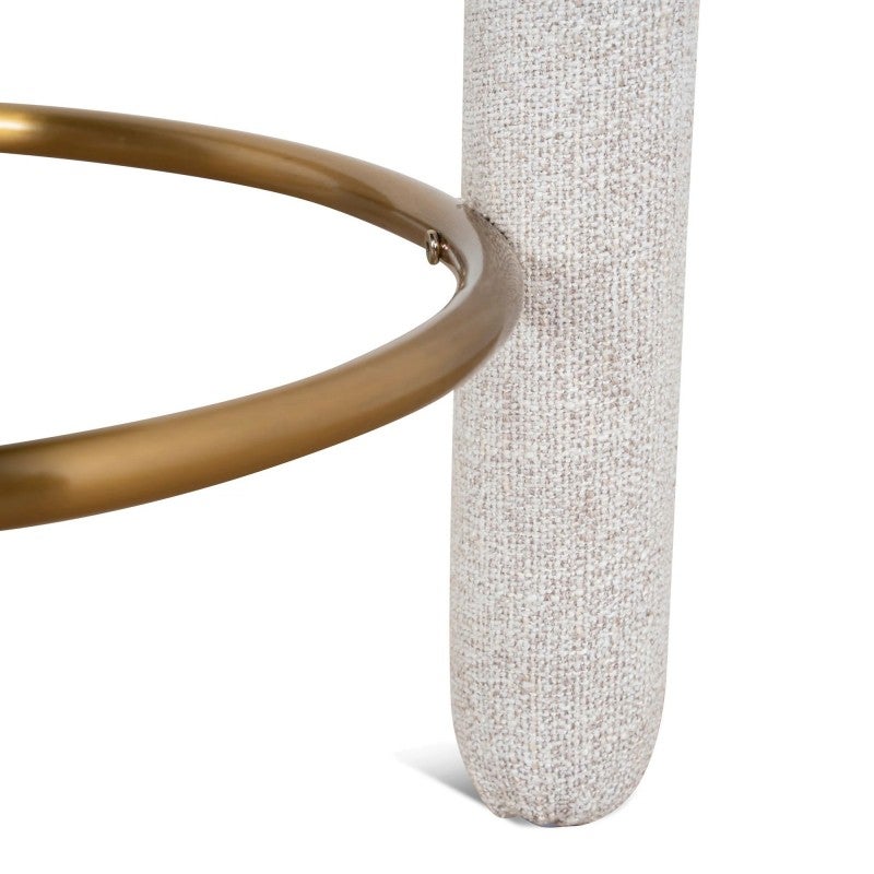 - Features metallic circular footrest in a warm gold tone