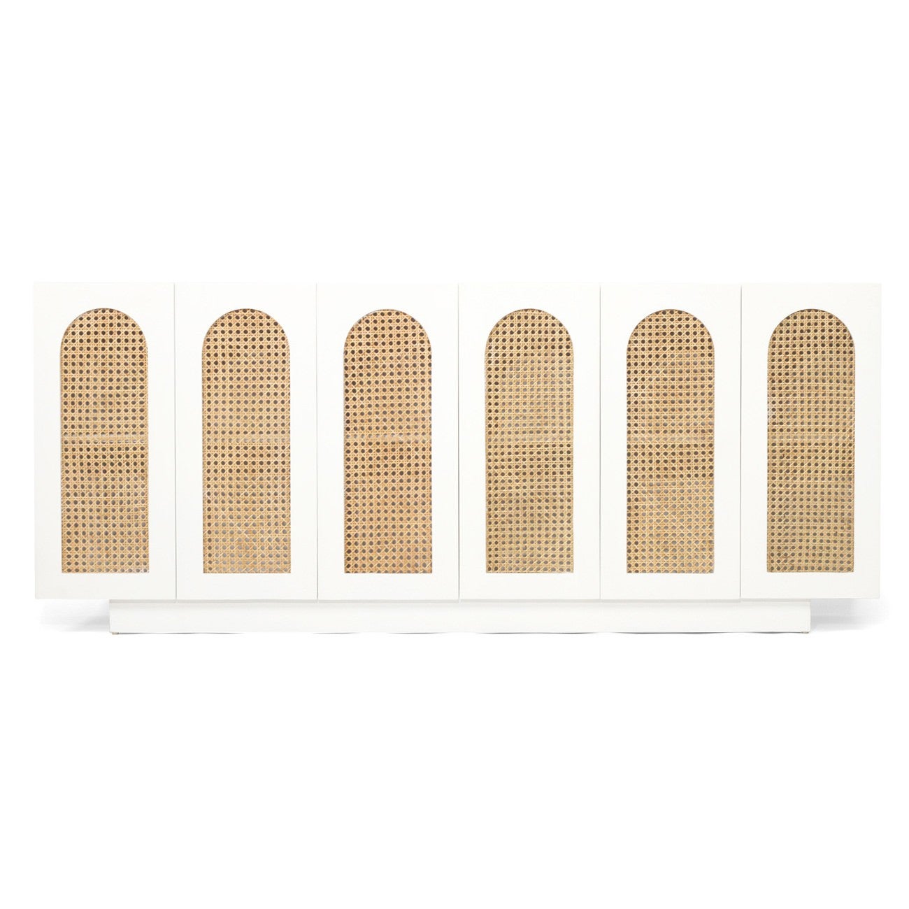 The Aurrum Sideboard is constructed from Mahogany wood and has a smooth white finish. It has 6 opening doors. Disclaimer: Due to varying moisture levels and temperatures regions across Australia, natural splitting, cracking (checking) and loss of natural oils may occur and form part of the characteristics and beauty of Abide Interiors solid wood products. These do not compromise the items performance or integrity in any way and are not viewed as imperfections or faults but rather part of timber's natural life and beauty. Care Instructions: Wipe clean with a soft, damp cloth. Avoid the use of cleaners and abrasives, as these will damage the material. - Brand