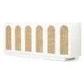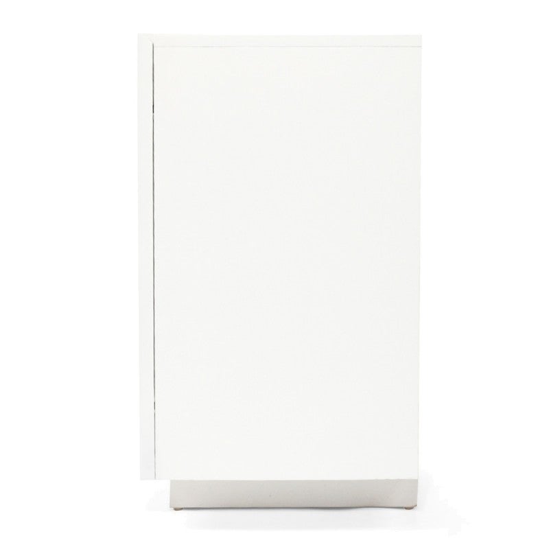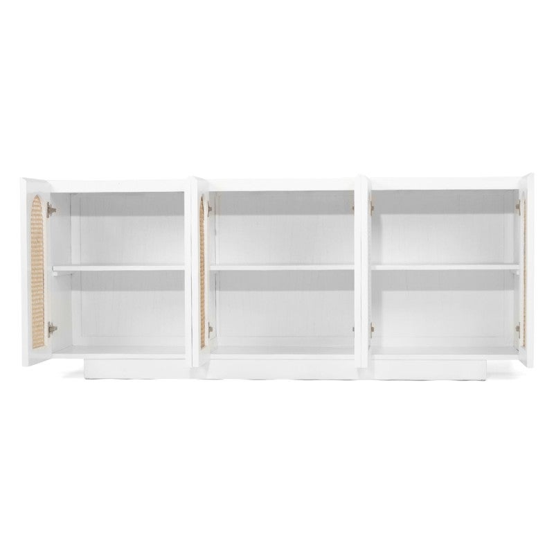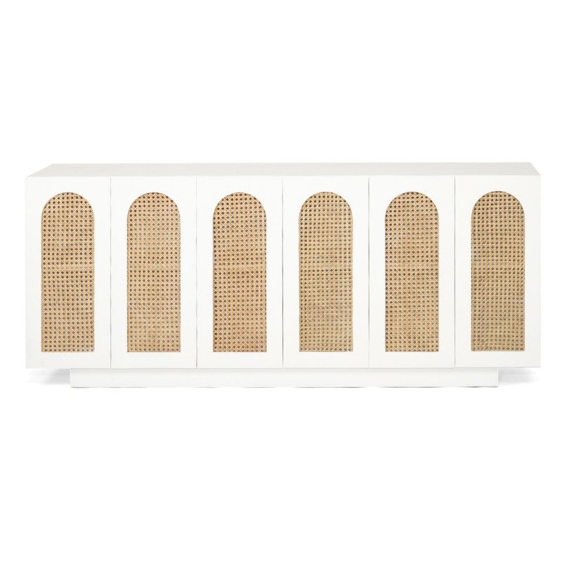 The Aurrum Sideboard is constructed from Mahogany wood and has a smooth white finish. It has 6 opening doors. Disclaimer: Due to varying moisture levels and temperatures regions across Australia, natural splitting, cracking (checking) and loss of natural oils may occur and form part of the characteristics and beauty of Abide Interiors solid wood products. These do not compromise the items performance or integrity in any way and are not viewed as imperfections or faults but rather part of timber's natural life and beauty. Care Instructions: Wipe clean with a soft, damp cloth. Avoid the use of cleaners and abrasives, as these will damage the material. - Brand
