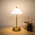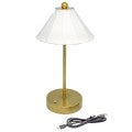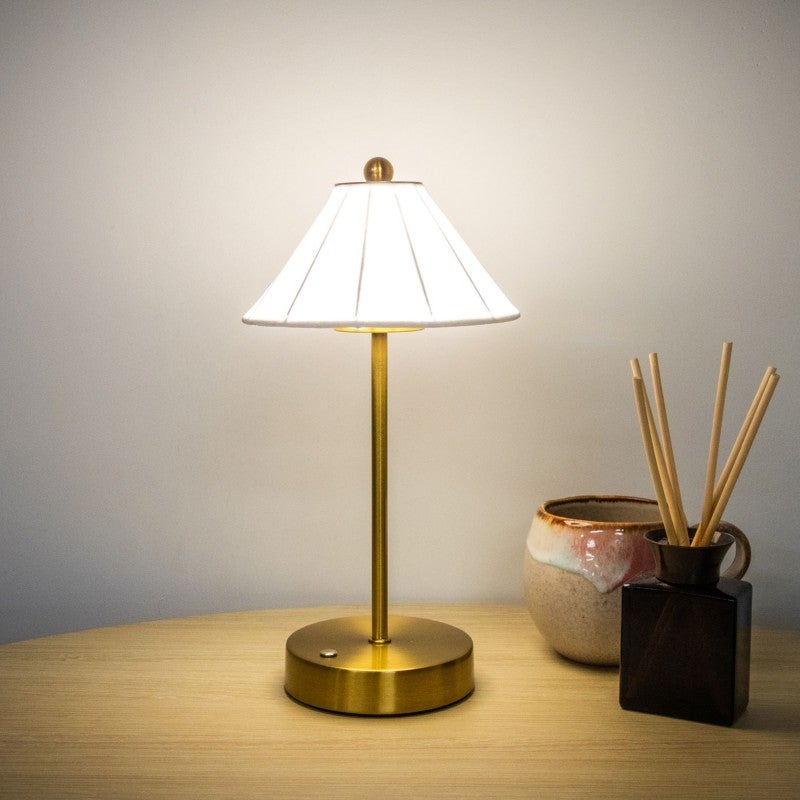 This table lamp is the perfect fusion of classic charm and modern functionality. With its luxurious brass-plated finish and soft white silk cone shade, it casts an elegant glow that adds sophistication to any space.