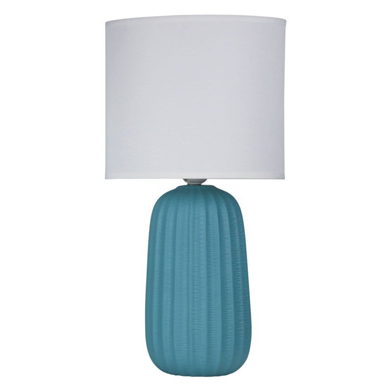 Benjy.25 ceramic table lamp complete with fabric shade. The Benjy base has a textured, matt finish and is supplied with an off-white poly-cotton laminated shade. Switch is on the cord. A nice bedside lamp.