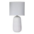 Benjy.25 ceramic table lamp complete with fabric shade. The Benjy base has a textured, matt finish and is supplied with an off-white poly-cotton laminated shade. Switch is on the cord. A nice bedside lamp.