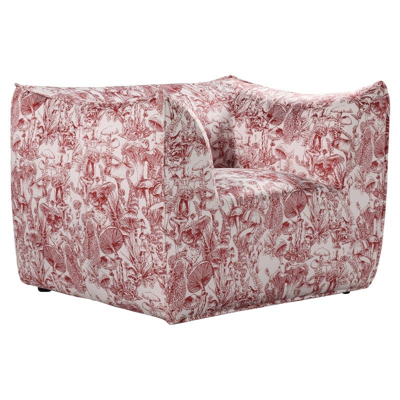 Designer inspired toile pattern print velvet chair that is the epitome of luxe.