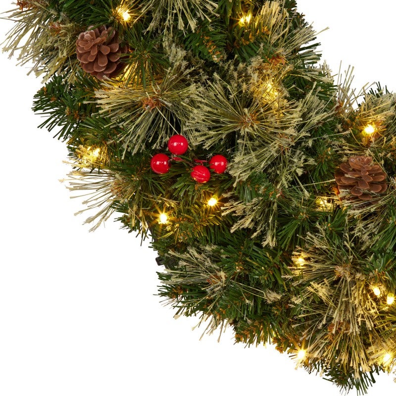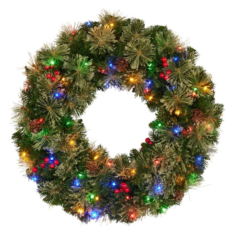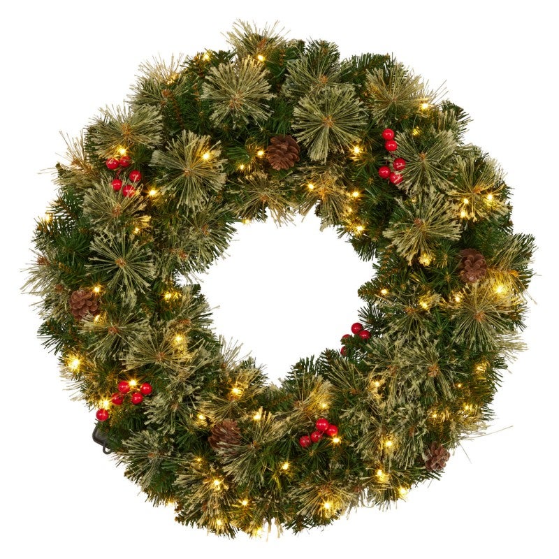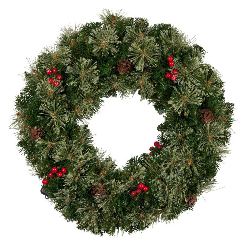 With its beautiful mix of dark and light pine branches and brush foliage with rich red berries and pine cones, the 61cm Bristle Berry wreath is a winner. It's a great size for most doors and looks stunning on a wall or even flat as a table centrepiece.