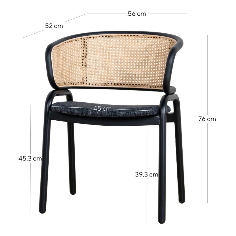 - 56cm W x 52cm D x 76cm H; Seat: 45cm W x 47cm D x 45.3cm H; Leg Height: 39.3cm; Arm Height: 70cm