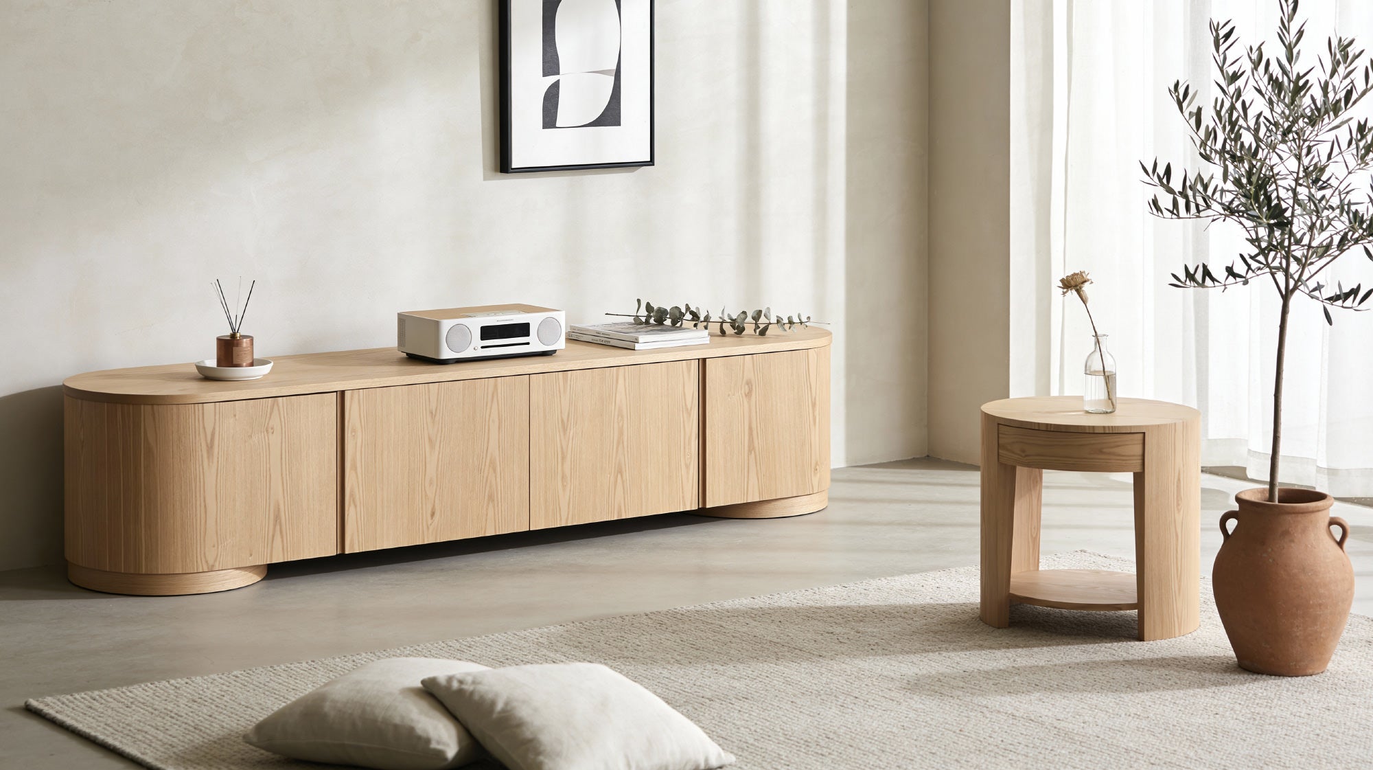 Angie Wooden 4 Door TV Unit, 220cm, Natural