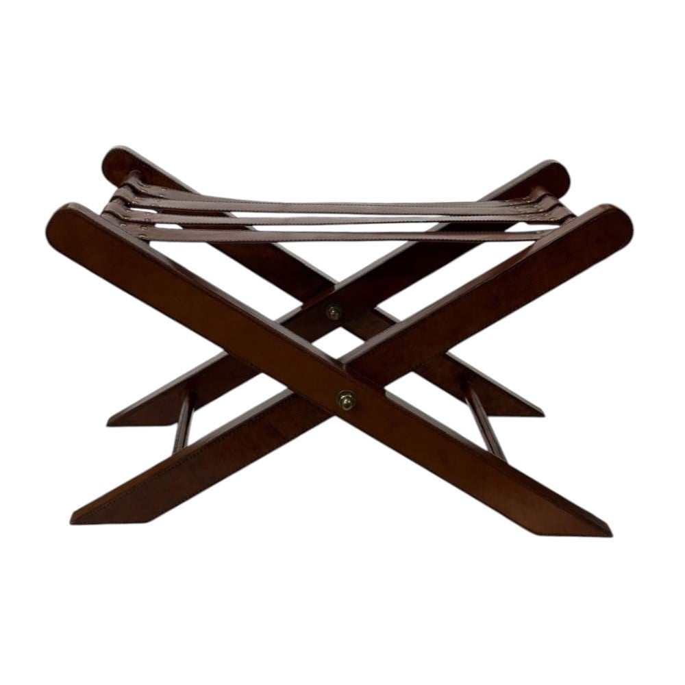 A Luggage table, tan-shaded with strong and firm legs, overall product hugged in pure leather. Made from premium quality buffalo leather, this rustic luggage rack is made using traditional techniques of hand stitching, hand painting and hand dyeing. The practical, understated piece makes packing a breeze - bring it out for a stable base for your luggage, and fold it away to store away when not in use.