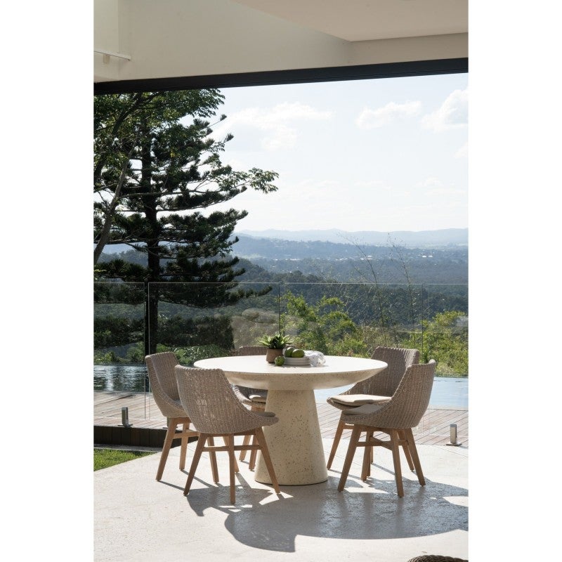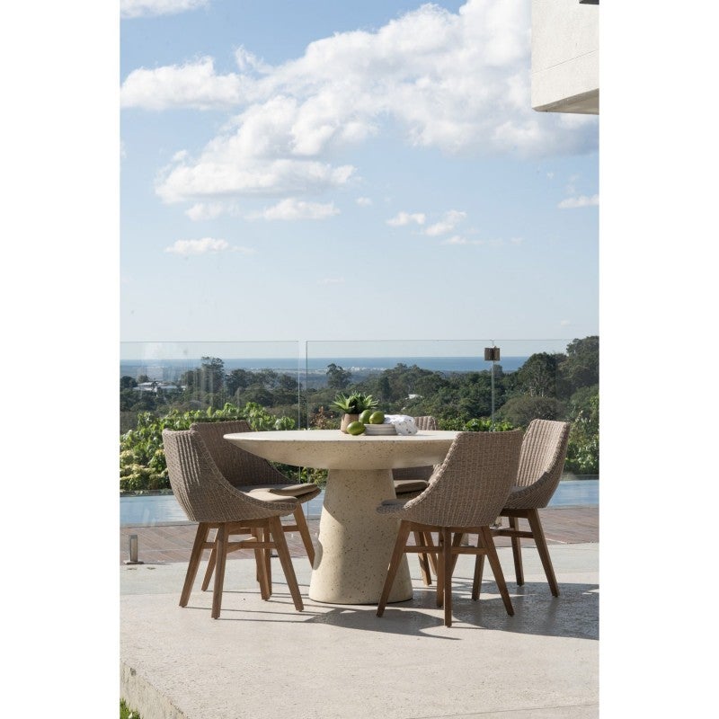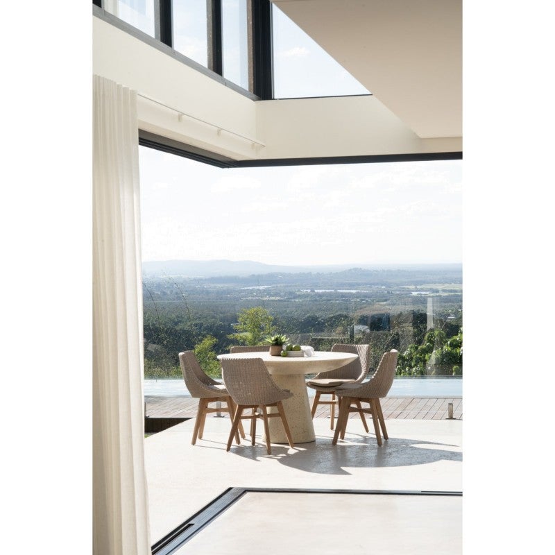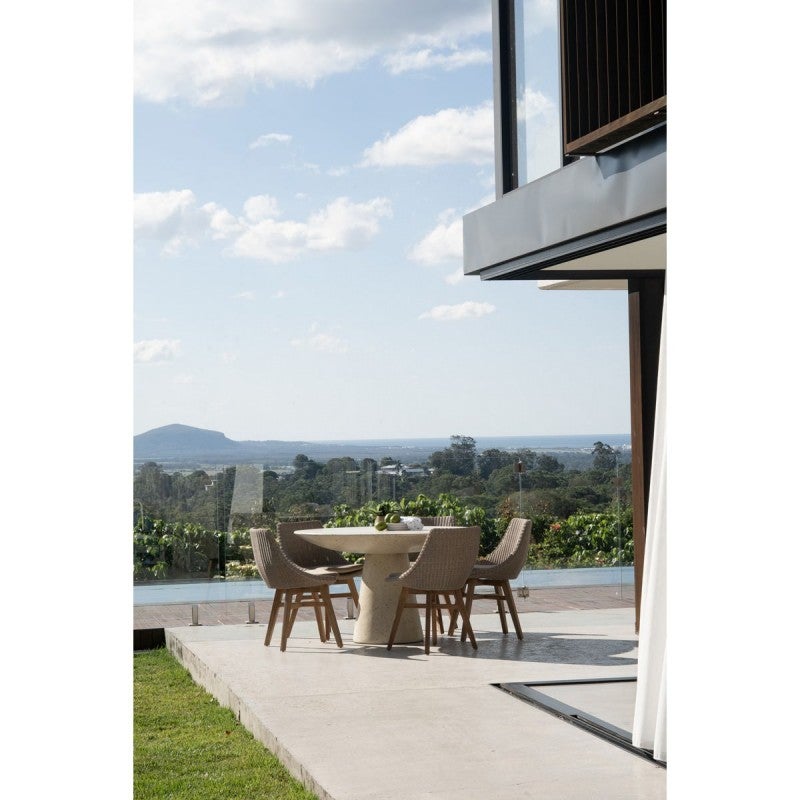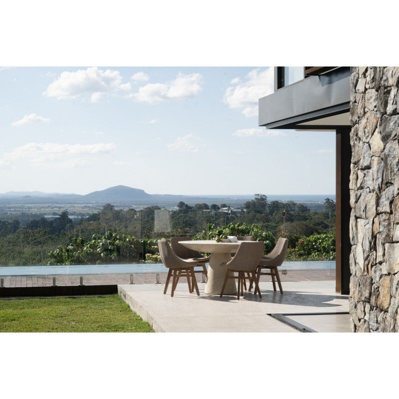 Sculptural, durable, and beautifully refined, the Cerin Dining Table is where timeless design meets everyday functionality. Crafted from resilient stone resin and finished in a soft quartz hue, its gracefully curved form and minimalist silhouette offer a sense of quiet sophistication. Designed to shine in both indoor and outdoor settings, the Cerin is resistant to the elements - making it just as suited to alfresco dining as it is to a contemporary interior. Whether hosting long lunches or casual dinners, the Cerin Dining Table brings effortless elegance to any space.