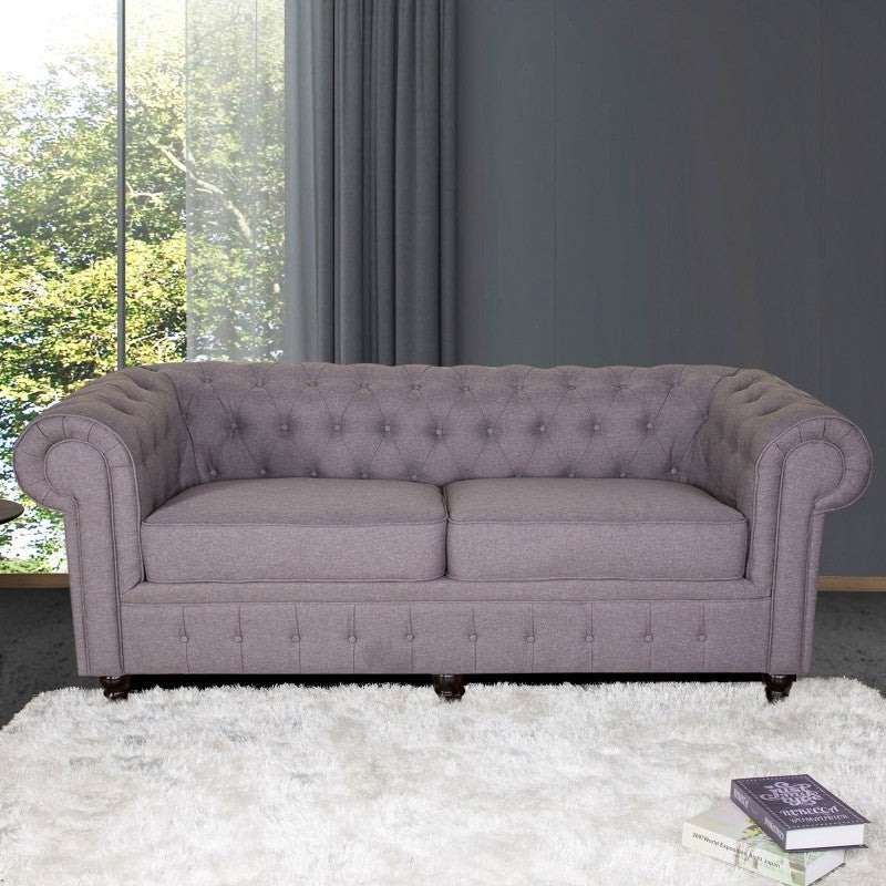 Sophistication meets comforts with our Cleo 3 Seater Sofa. With a curved chesterfield styled design and matching coloured buttons, you can have an eye catching statement piece that brightens your living room and leaves an impression of elegance. Use the Cleo Sofa for enjoying a quiet night lounging around or entertaining guests. The Cleo Sofa is the perfect ratio of simplicity, comfort, class and style.