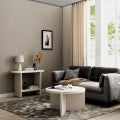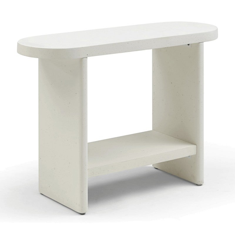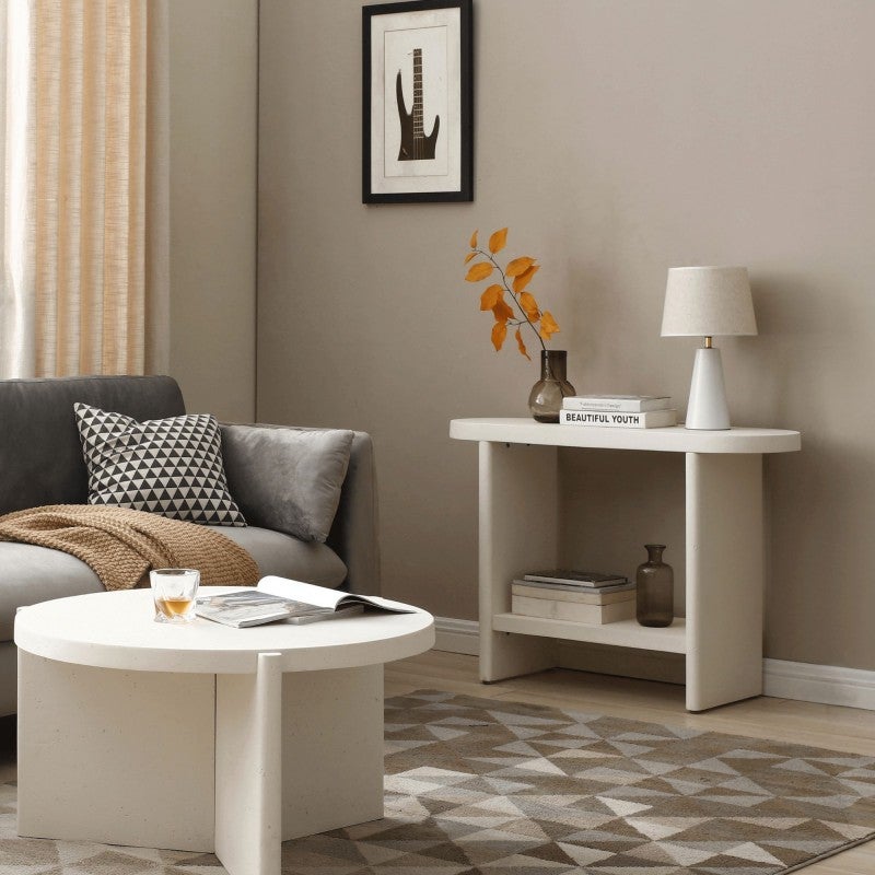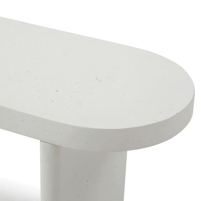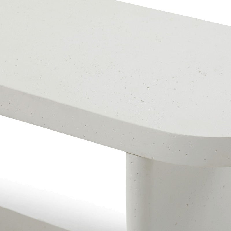 Introducing the Delos Sandstone Look Console Hall Table in White. Crafted to captivate, this exquisite console table offers timeless and classic aesthetic with a chic, contemporary charm that seamlessly blends modern design and luxurious materials. Featuring curved legs and elegant sandstone looks, it's the perfect eye-catching addition to any hallway or entryway. Shop the range for all your furniture needs and you'll find something ideal for your space. Boasting a European coastal style, this console hall table from Delos is a masterful blend of fashion-forward design and quality craftsmanship. Note: the distressed stone look is created to give a unique finish and texture. This characteristic is part of the table design.