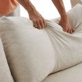 - Fabric (100% Polyester), Feather, High Density Foam, Solid Timber Frame, Timber Legs
