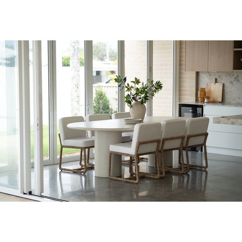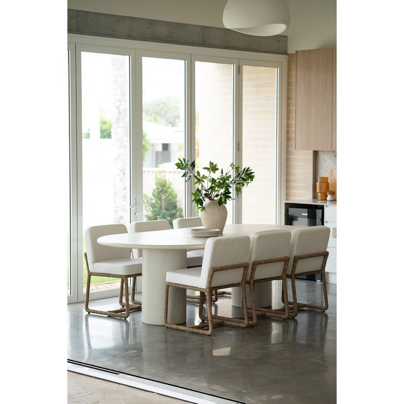 Our Elvano Oval Dining Table is durable and hard wearing. Finished in latte coloured micro cement, the Elvano Oval Dining Table is a magnificent addition to your dining area.