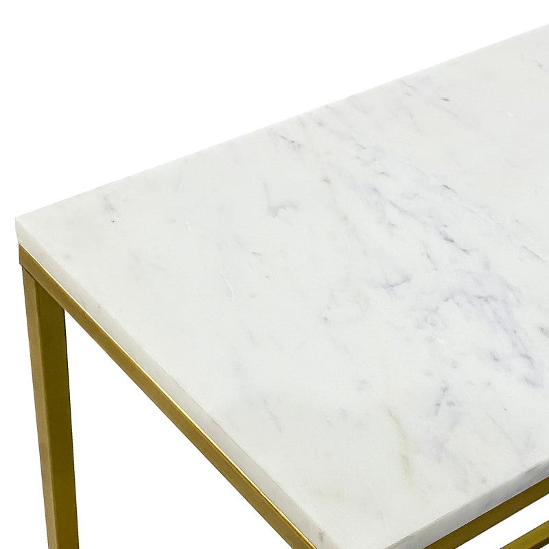 Fab Habitat's marble console table will add style and luxury to your home. Designed in stunning gold finishes for timeless and elegant charm for your living space. Table top have ample space to conveniently hold photo frames, decorative pieces, and vases. Table top is made of genuine marble for strength and style. Frames are constructed from superior powder coated iron for outstanding durability and support to last. Assembly required, instructions provided. Please follow the care instructions provided with the product. Due to the nature of the materials, the grain and colour may vary to maintain natural aesthetic. Colour may also vary due to screen/monitor settings.