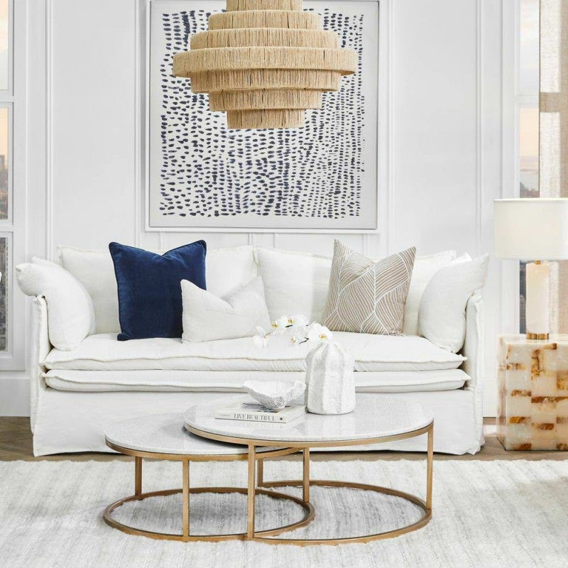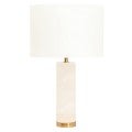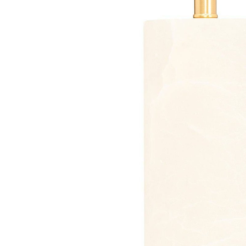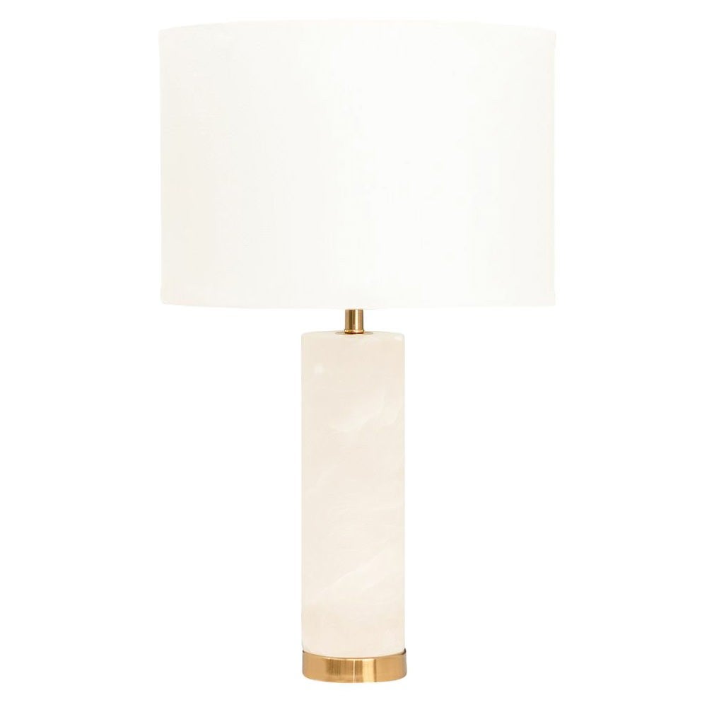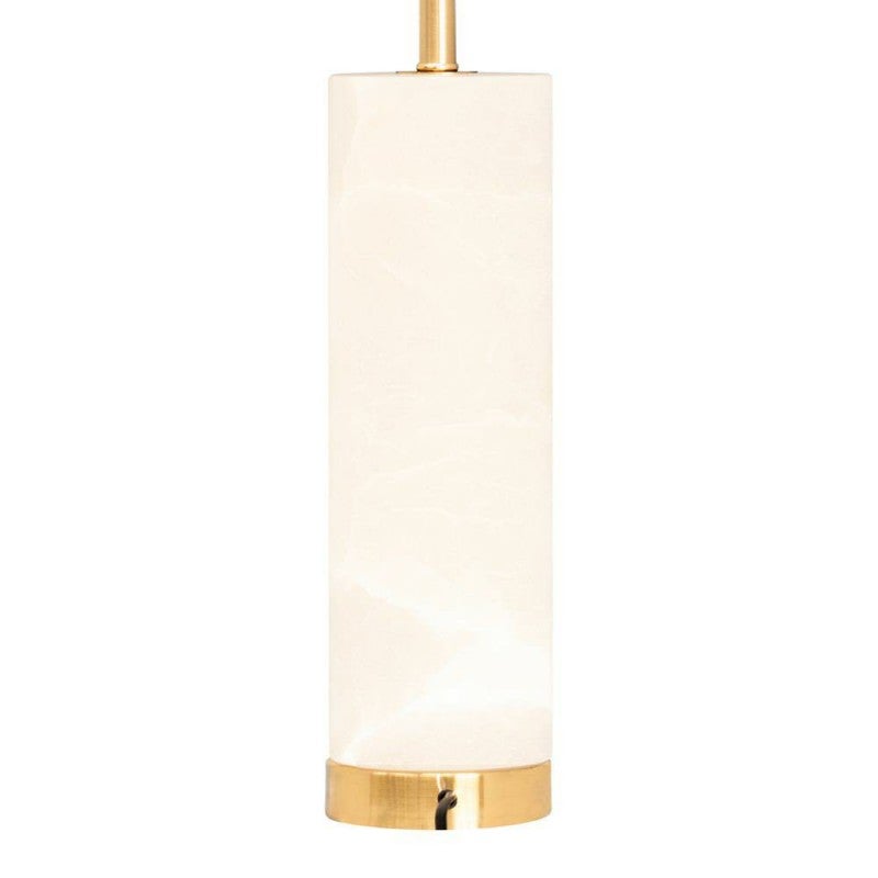 Unpretentious luxury and slender in design, the Kolari Table Lamp features a divine alabaster and brass-finished cylindrical base topped with a fresh faux off-white linen drum shade. Perfectly proportioned, the Kolari Table Lamp is a versatile piece that is at home in a classic or contemporary space. In-Line Switch; White Cord.
