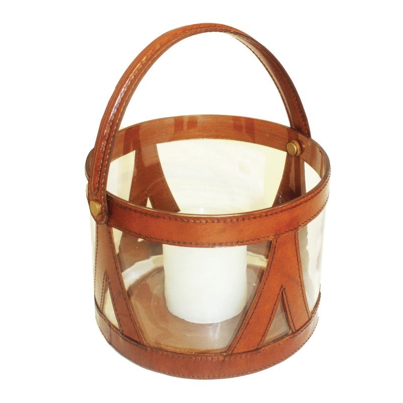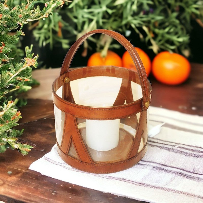 Lantria Leather & Glass Hurricane Lamp, Small