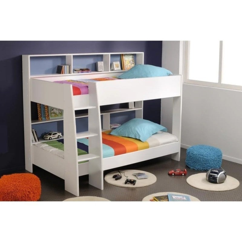 The Back Panel for the item comes with 2 different colours Sky Blue and White, easily turn around to choose between Blue and White. The ladder can only be positioned on the side as pictured.