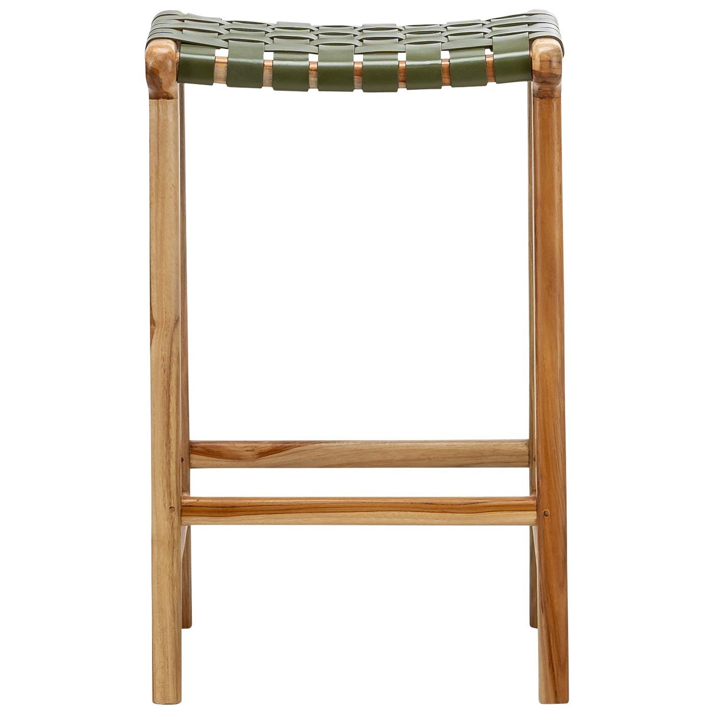 It is undeniable that there is an oddly satisfying pleasure in seeing perfectly woven materials. The Leather Lazie Counter Barstools' headline feature of comfortable criss-crossed leather straps is complemented by the Solid Teak construction of its frame. There is an inescapable exotic air about the Leather Lazie Counter Barstool that is inviting and stylish at the same time. Wine and dine in suspended comfort with the Leather Lazie Counter Barstool. Please note: All of our products are beautifully handcrafted from Central Java Indonesia, utilising natural & organic materials, hence no two pieces will be the same.The frame is constructed from natural sustainably grown solid teakwood, the organic composition of the wood will display different shades of colour as intended by mother nature.While our team take the upmost care in selecting our hides, leather is a natural product and differs from hide to hide. Small variances in colour may be expected. Small imperfections, marks & blemishes may also be visible. This is not considered a fault but inherent of the natural beauty and uniqueness of the leather. - Brand