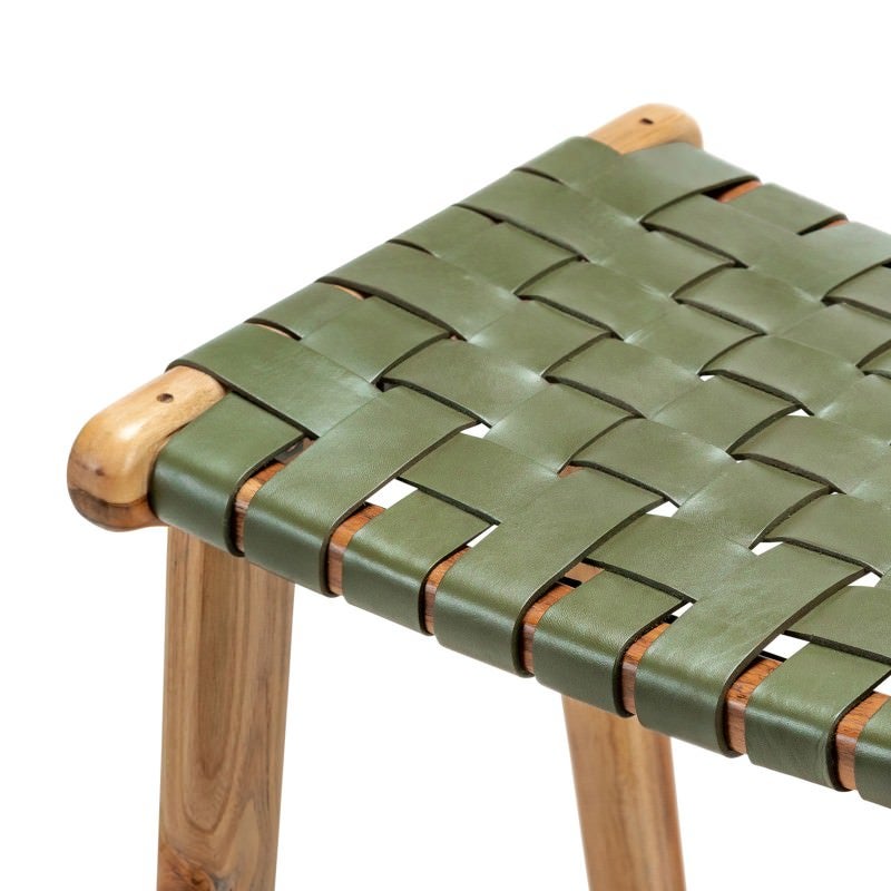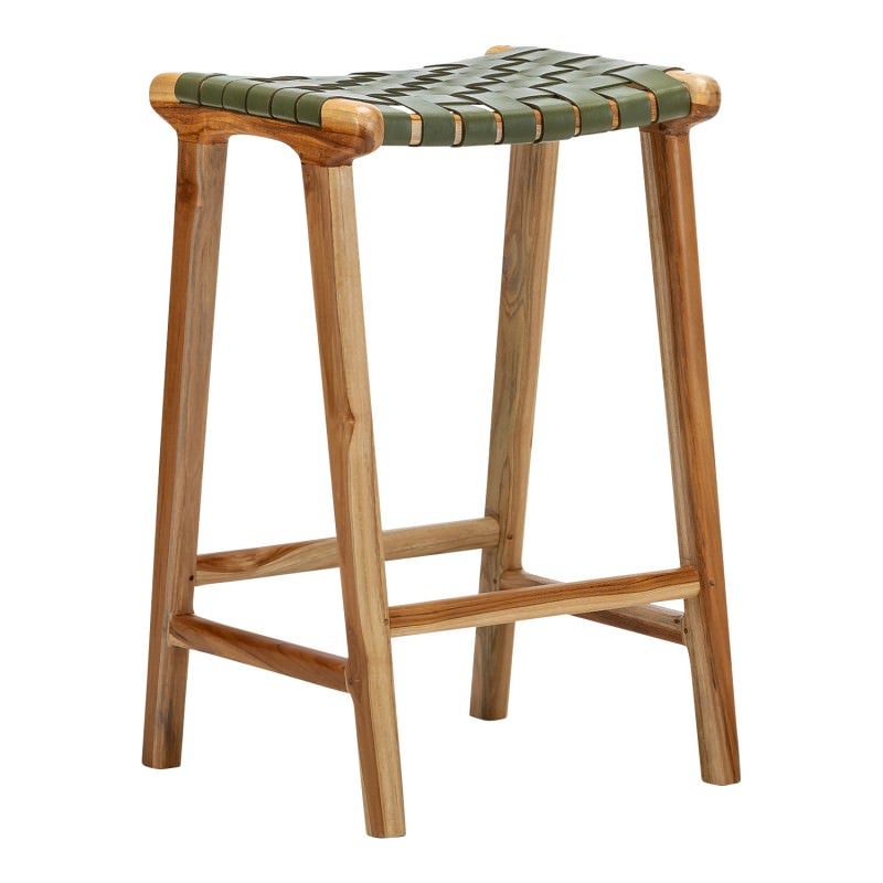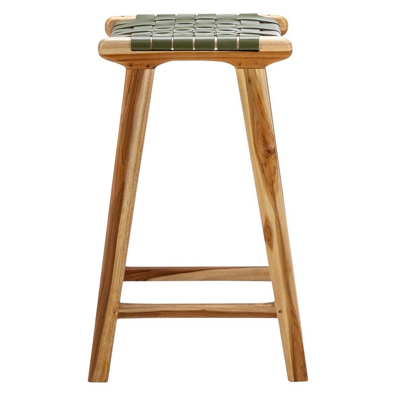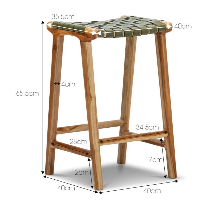 It is undeniable that there is an oddly satisfying pleasure in seeing perfectly woven materials. The Leather Lazie Counter Barstools' headline feature of comfortable criss-crossed leather straps is complemented by the Solid Teak construction of its frame. There is an inescapable exotic air about the Leather Lazie Counter Barstool that is inviting and stylish at the same time. Wine and dine in suspended comfort with the Leather Lazie Counter Barstool. Please note: All of our products are beautifully handcrafted from Central Java Indonesia, utilising natural & organic materials, hence no two pieces will be the same.The frame is constructed from natural sustainably grown solid teakwood, the organic composition of the wood will display different shades of colour as intended by mother nature.While our team take the upmost care in selecting our hides, leather is a natural product and differs from hide to hide. Small variances in colour may be expected. Small imperfections, marks & blemishes may also be visible. This is not considered a fault but inherent of the natural beauty and uniqueness of the leather. - Brand