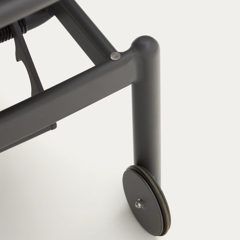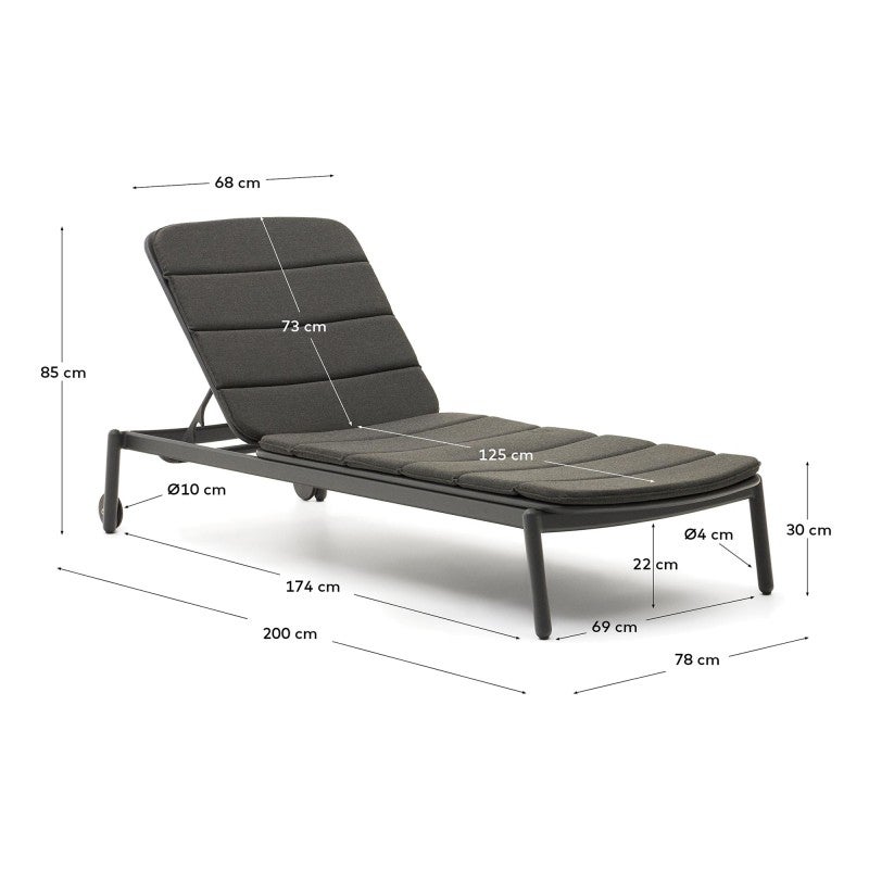 The Marciano sun lounger in black has an adjustable backrest with 4 positions and wheels for easy transportation. Tailor-made comfort is a reality with the Marcona sun lounger, suitable for outdoor use as it is made from aluminium. It is recommended to store the cushion in wet weather to prolong the life and quality of the product.