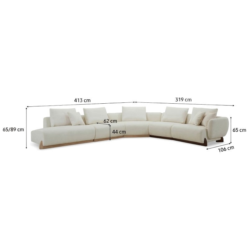 - 413cm W x 319cm D x 65cm/89cm H; Seat Height: 44cm