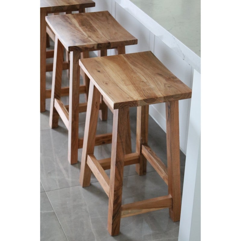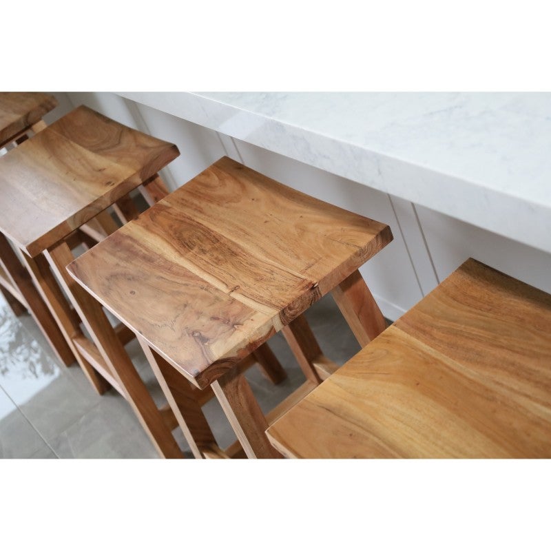 Elevate your seating with this beautifully crafted barstool made from sustainably sourced acacia wood. Measuring 46x35x66 cm, its natural wood grain and warm tones create a stylish yet functional piece perfect for any bar or kitchen counter. The sturdy construction ensures durability, while the compact design provides comfort without taking up too much space. Whether used for dining or casual seating, this barstool adds a touch of rustic charm to any setting. Due to the nature of the materials, the grain and colour may vary to maintain natural aesthetic. Colour may also vary due to screen/monitor settings.