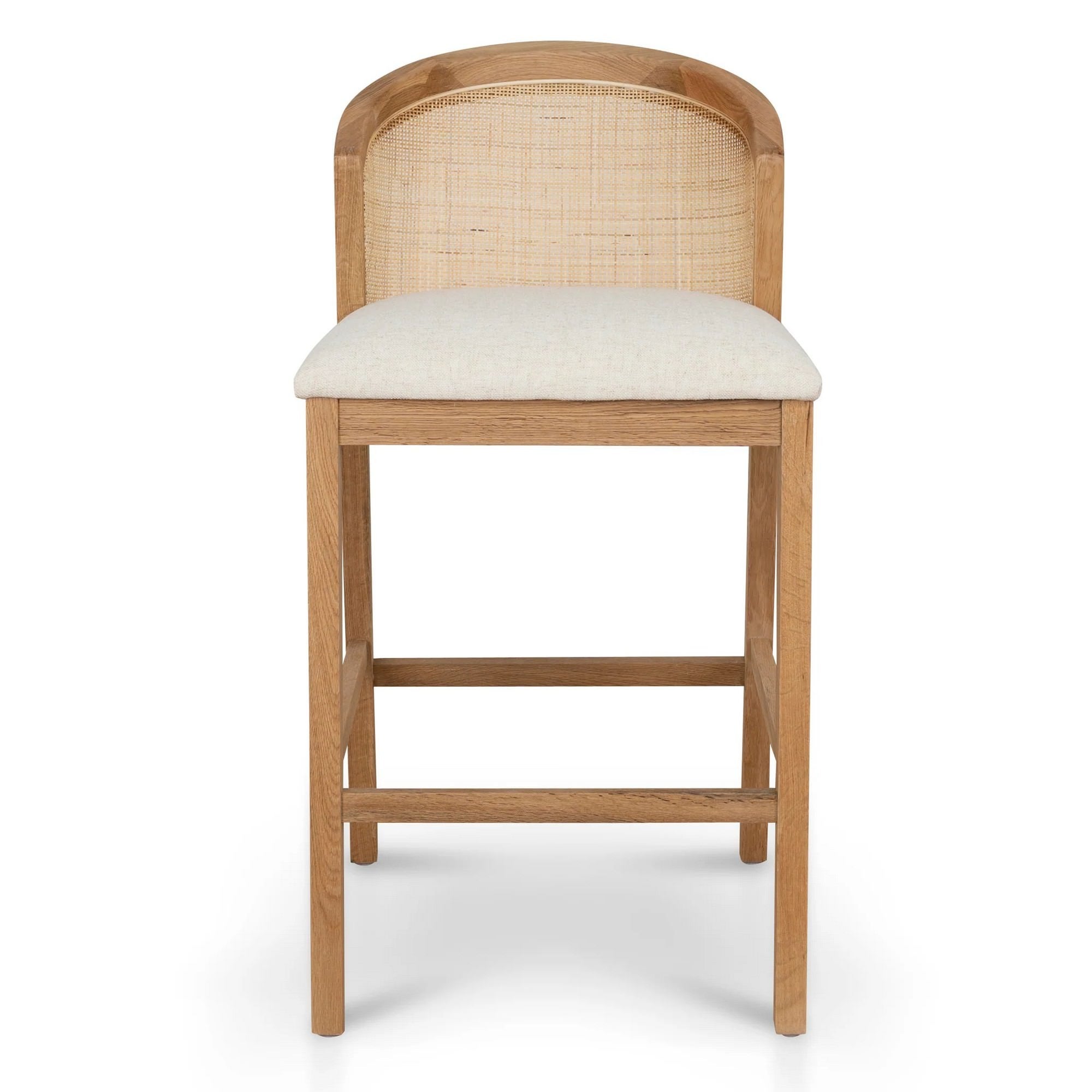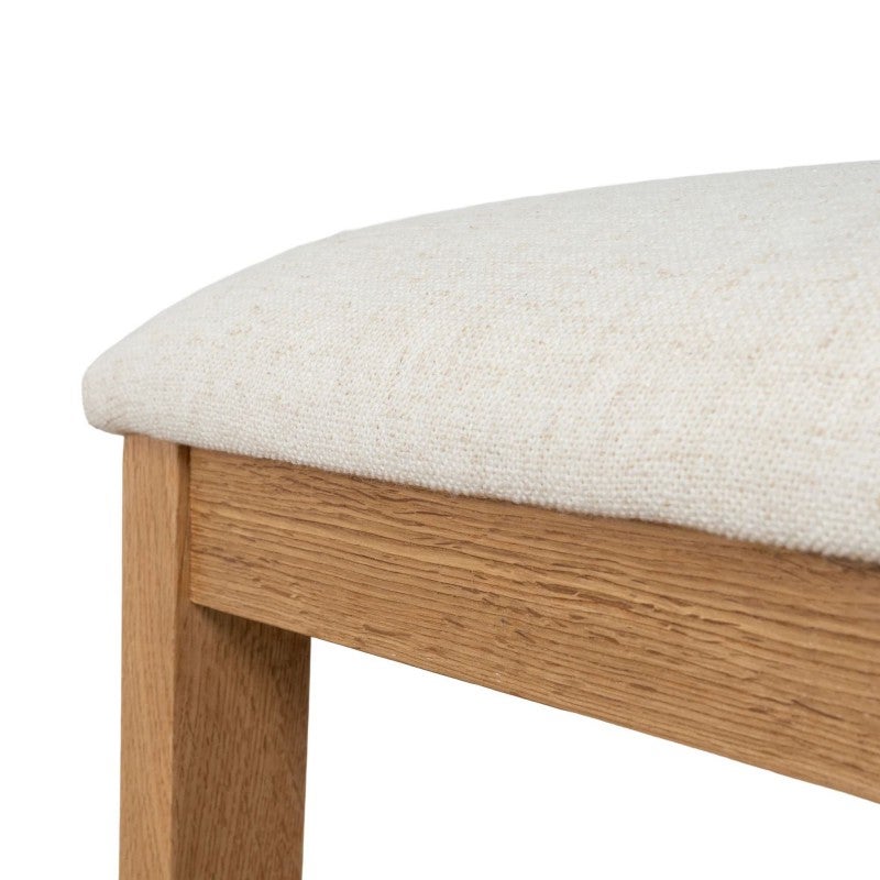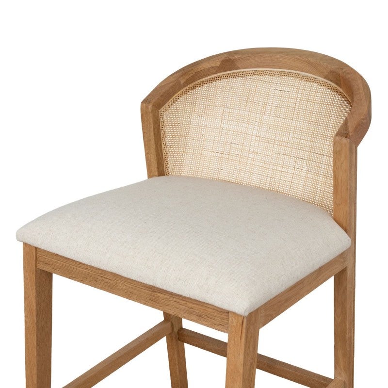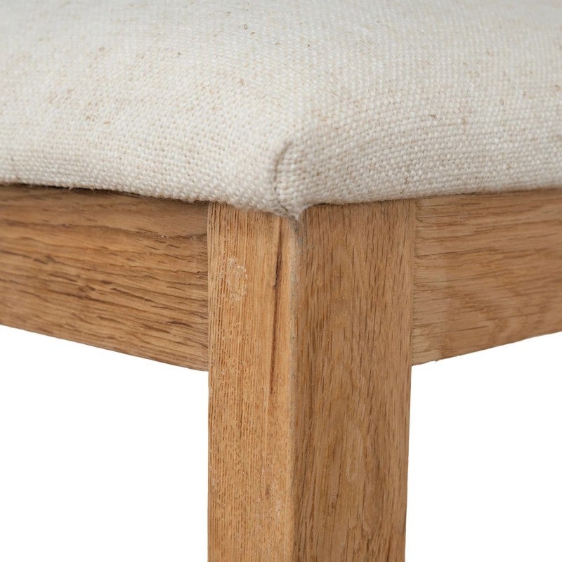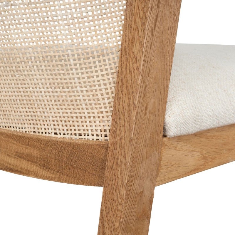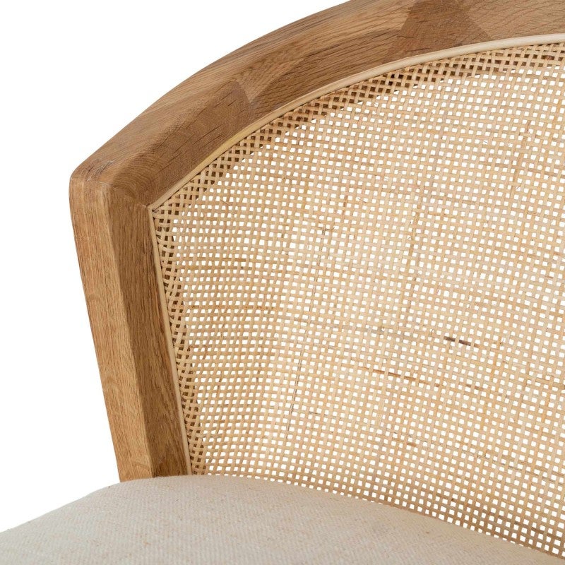 - Oak Timber, Rattan, Fabric (90% Polyester / 10% Linen), Foam