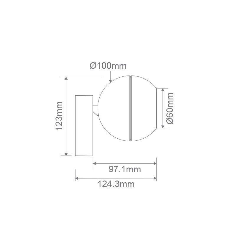 - 12.3cm W x 10cm D x 12.4cm H; Light: 10cm Dia x 9.7cm H
