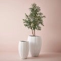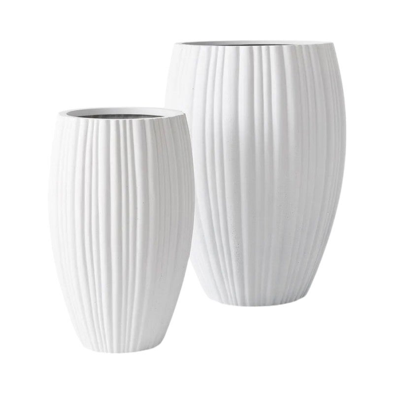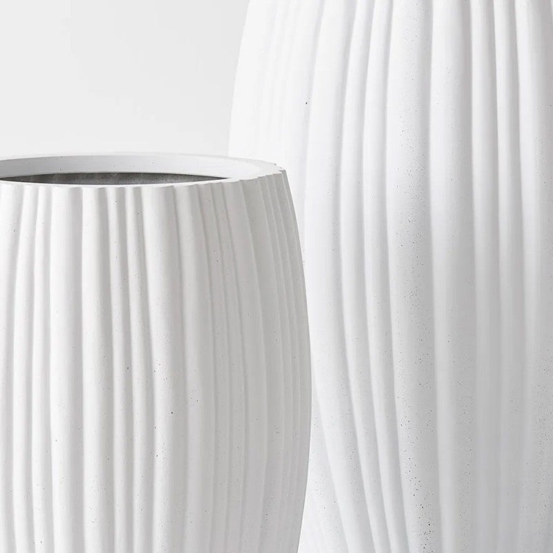 The Neptuno pots, offered as a set of 2 in white, stand as the perfect contemporary vessels for enhancing the beauty of your plants in any setting. This pot is handmade from polystone crafted with a distinctive fluted finish, these pots are handmade, which means you may encounter subtle variations in size, surface texture, or colour, adding to their individuality. Designed for both indoor and outdoor placement, every Neptuno pot includes a drainage hole for ensuring the best care for your plants.