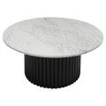 - A versatile, contemporary style featuring white marble top with base in a contrast finish