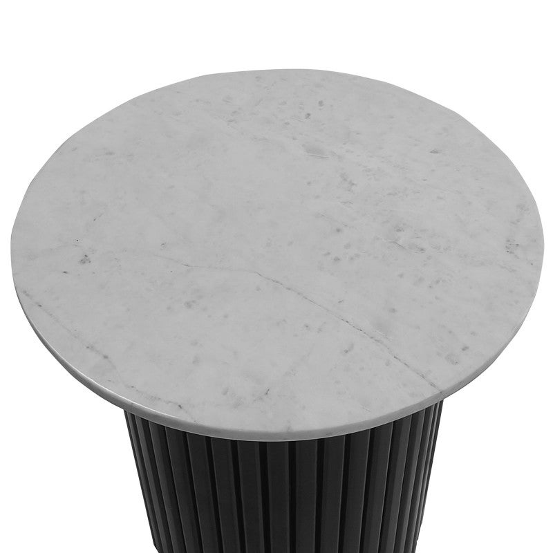 - A versatile, contemporary style featuring white marble top with base in a contrast finish