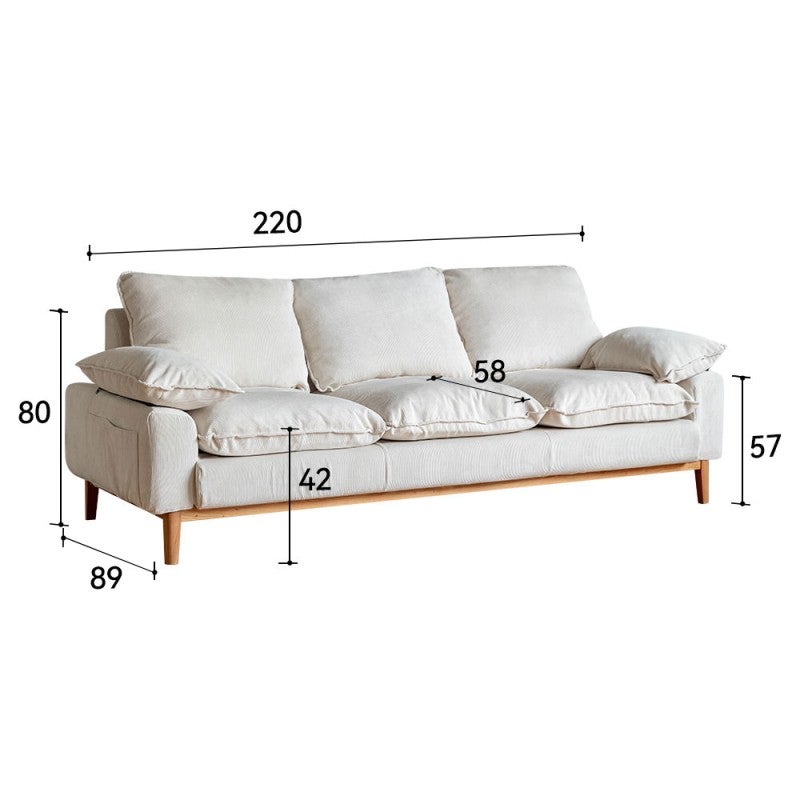 - 220cm W x 89cm D x 80cm H; Seat Height: 42cm