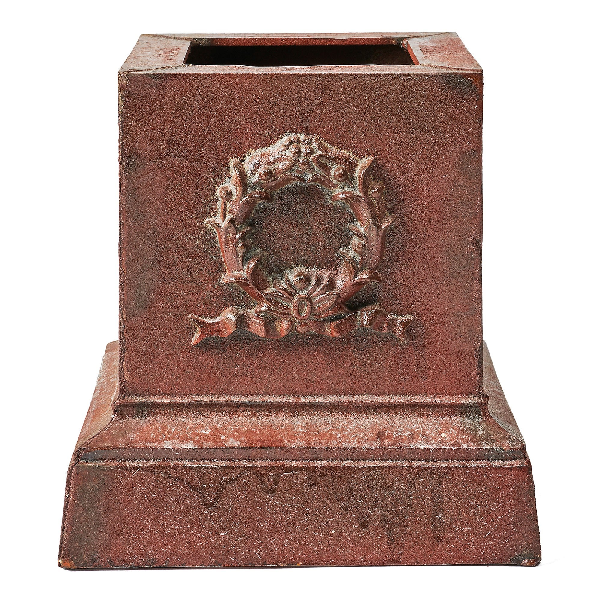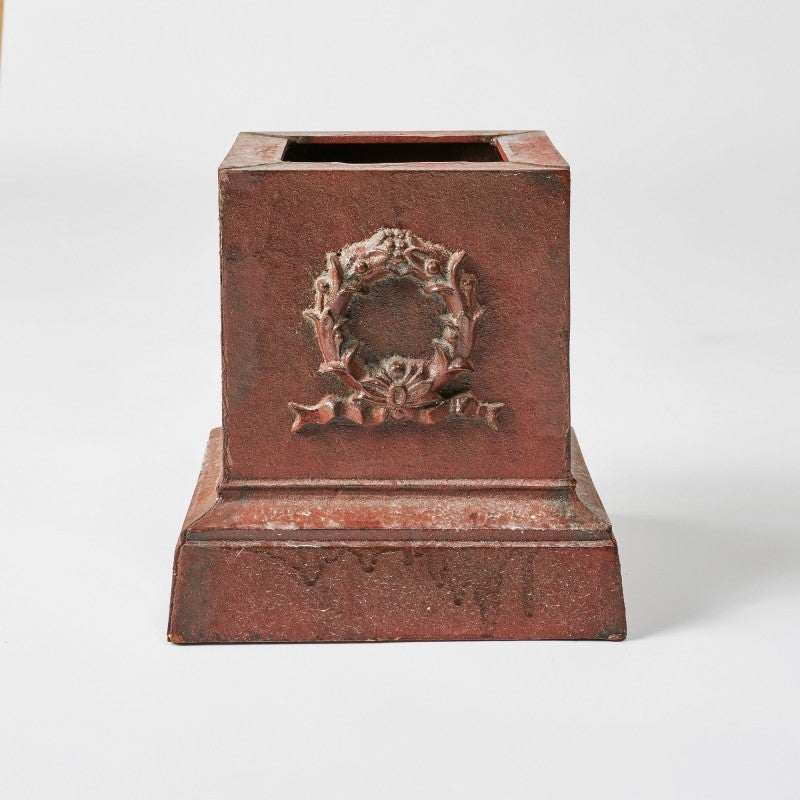 This medium size cast iron plinth is a robust and timeless addition to your garden decor, weighing 14kg and measuring 29cm in width, 29cm in depth, and 30cm in height. Designed to complement with 45cm cast iron and medium-small urns, it provides a sturdy and elegant base for your display. Over time, it will naturally rust and develop a unique patina, enhancing its character and charm. For those who prefer to preserve its finish, Penetrol can be applied as protection against the elements