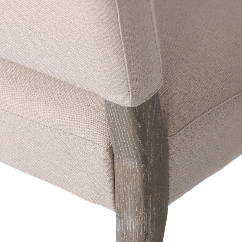 The Oscar Dining Chair in natural coloured linen features a gracefully curved back- upholstered in a soft linen-blend for a comfortable and sophisticated seating experience. The ash wood-stained beechwood frame adds a touch of country farmhouse charm- while the chairs timeless design and light- neutral colour palette bring rustic elegance and style to any dining space. Ideal for casual dinner settings- the Oscar Dining Chair effortlessly combines comfort and contemporary luxury