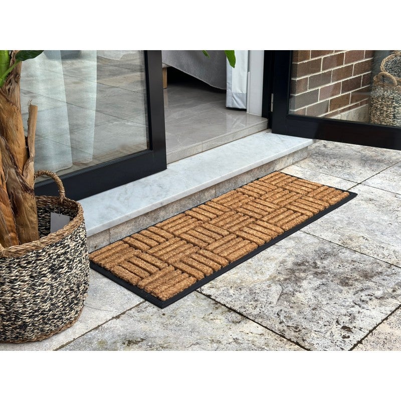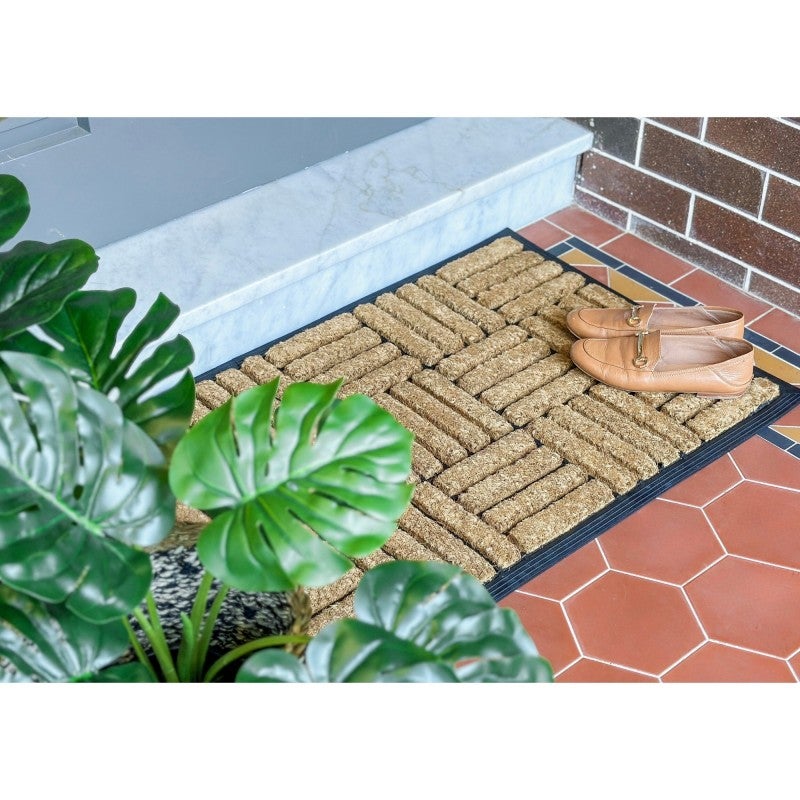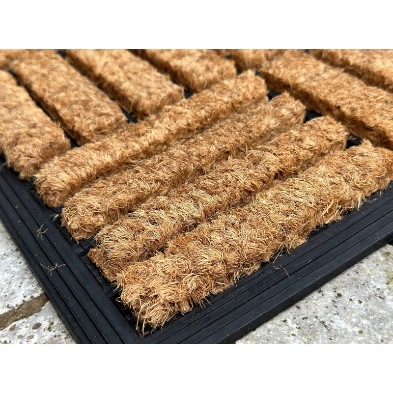 This is a doormat with natural coir fibre and rubber border. Tough, durable and well-made, this doormat will add the perfect decor touch to the entrance to your home, while also being efficiently practical. Fresh and new designs to suit everyone's taste. The mat is 2cm thick and is unlike any other mat in the market.