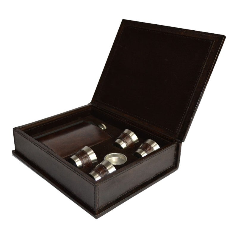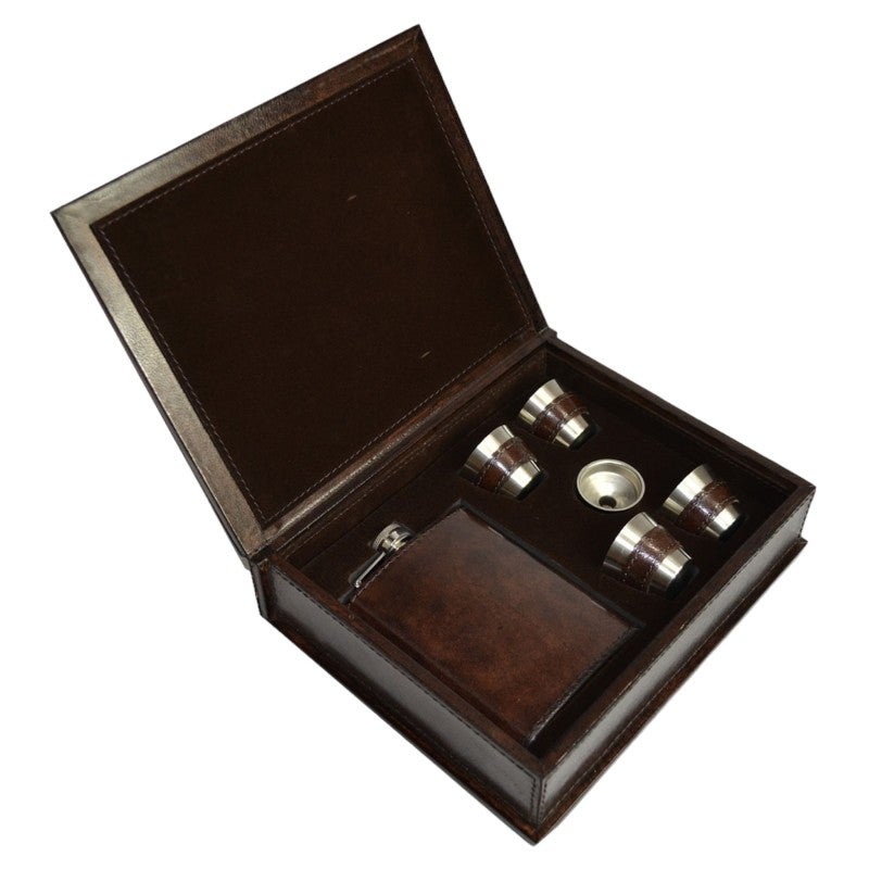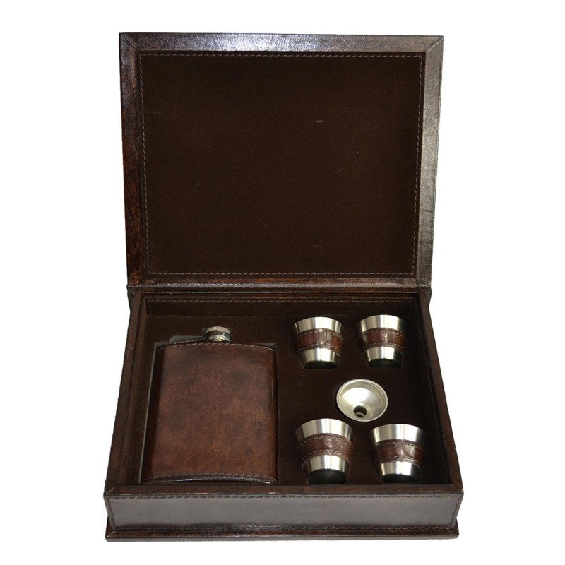 Presented in a sleek leather box this premium hip flask set is designed for those who appreciate refined craftsmanship and effortless portability. The set includes: