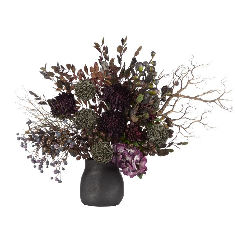 When it comes to decorating with greenery, Rogue’s everlasting arrangements are a highly sought-after option. This Chrysanthemum Fig Garden Mix-Malia Pot is the perfect accessory to add a splash of colour to the home. Designed and handcrafted in Melbourne, it displays a stunning mix of large purple chrysanthemums and figs, purple bud sprays, green leaves, brown stems and faux soil detailing. The Malia Pot is made from ceramic in a black finish and abstract silhouette, elevating the arrangement further. Botanically accurate and with remarkable attention to detail, it will enrich any corner of the home. Being artificial, it’s very easy to care for. Refresh your space with this stunning Chrysanthemum Fig Garden Mix-Malia Pot from Rogue.