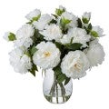 - Designed and handcrafted in Melbourne, it features a mix of brilliant white peony blossoms, buds and vibrant green leaves.