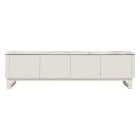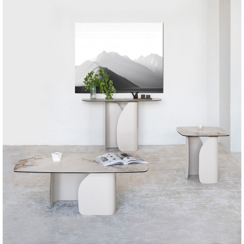 The Rosvina range embodies modern elegance with a refined architectural touch. Each piece is crowned with a matte Milan white marble ceramic top, layered on tempered glass for strength and beauty, and finished to be scratch resistant. The body, crafted in MDF with a matte ivory painted finish (for buffet and TV-unit), blends seamlessly with the sleek ivory powder-coated metal frame. From statement storage to sophisticated occasional tables, the Rosvina range brings harmony, durability, and timeless design into any contemporary home.