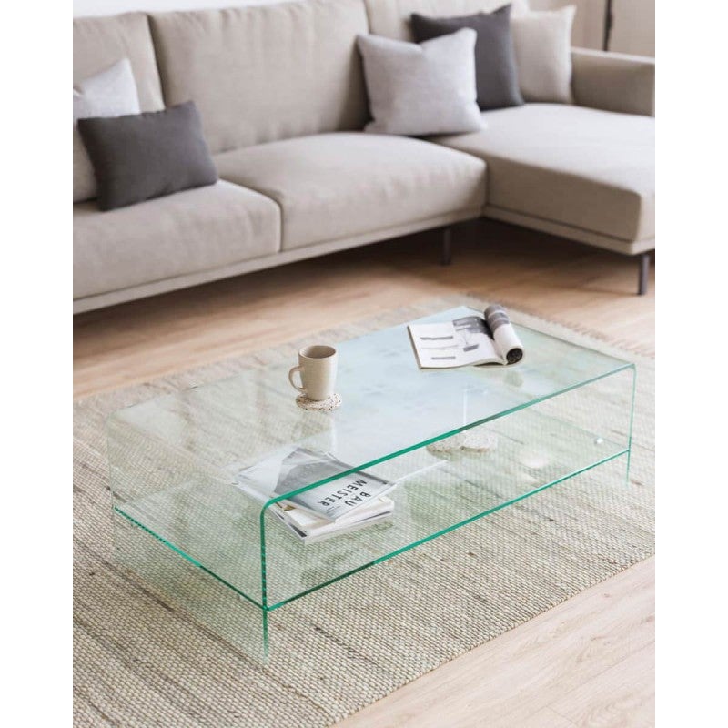 Made from tempered glass, which is tougher than standard glass. It's more resistant to scratches, knocks and changes in temperature. The tempered glass is 10mm thick. In the light, small halos may be visible in the glass. Plastic protectors on the feet to protect your floor. Minimalist glass design with clean lines and rounded edges. Ideal for making small room feel brighter and more spacious.