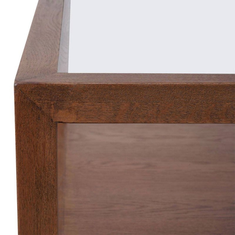 The Sadie Collection showcases a perfect balance of brushed oak wood and sleek tempered glass, designed to bring effortless sophistication to modern and classic interiors. Bringing this refined aesthetic into focus, the Sadie Square Coffee Table features a walnut brushed oak frame, introducing a rich, warm tone that adds depth and natural elegance to any space. The crystal-clear tempered glass top enhances the openness of its design, creating a light and airy feel. Designed for both style and functionality, the lower shelf provides additional space for storage or curated displays, making it an elegant yet practical centrepiece. Its minimalist silhouette integrates seamlessly into curated interiors, enriching any living space with a touch of timeless sophistication.