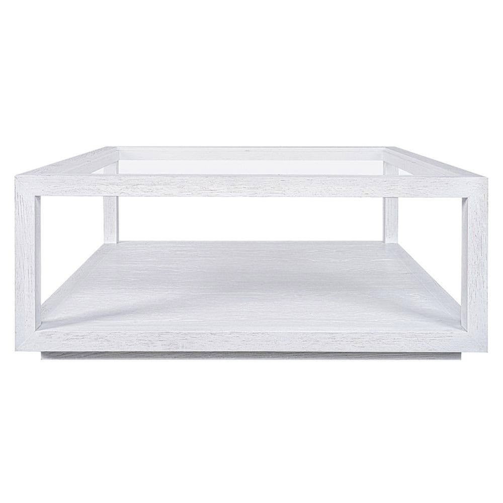 The Sadie Collection showcases a perfect balance of brushed oak wood and sleek tempered glass, designed to bring effortless sophistication to modern and classic interiors. Bringing this refined aesthetic into focus, Sadie Square Coffee Table features a white brushed oak frame, offering a fresh, airy elegance that brightens any space. The crystal-clear tempered glass top enhances the lightness of its design, creating an open and spacious feel. Designed for both style and functionality, the lower shelf offers additional space for storage or curated displays, making it an elegant yet practical centrepiece. Its minimalist silhouette integrates seamlessly into curated interiors, enhancing any living space with a touch of timeless sophistication.