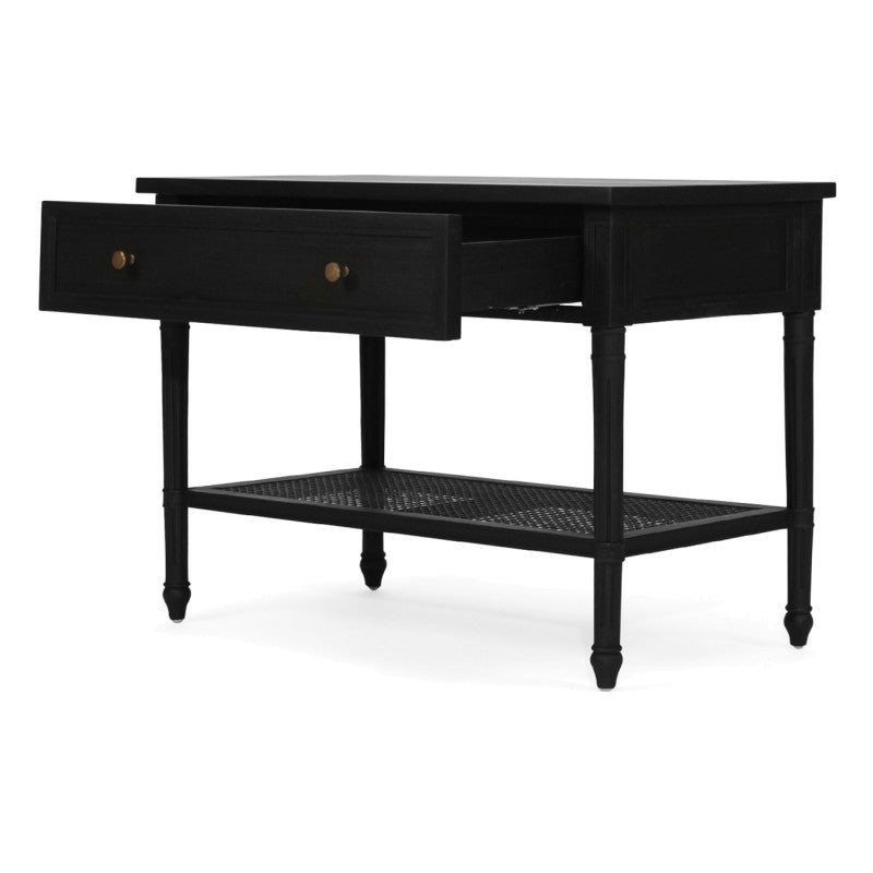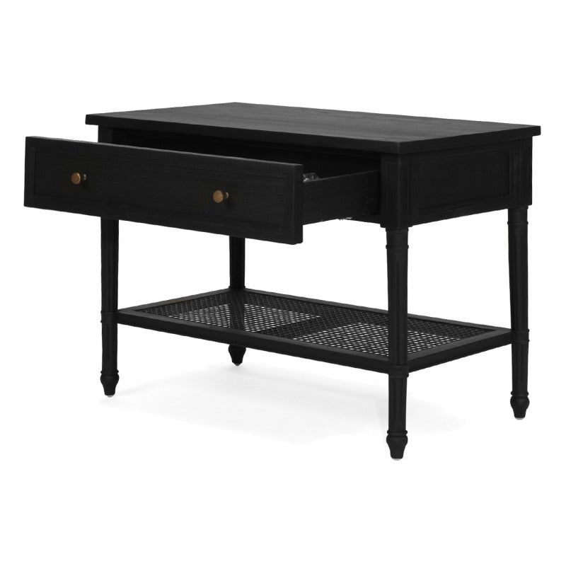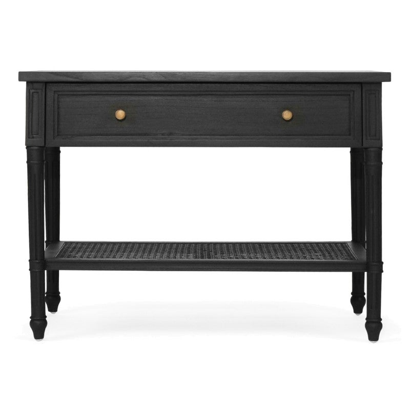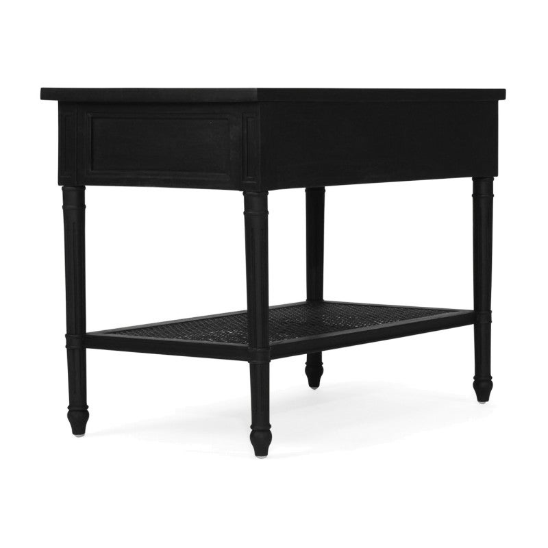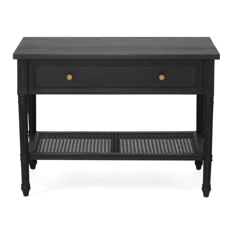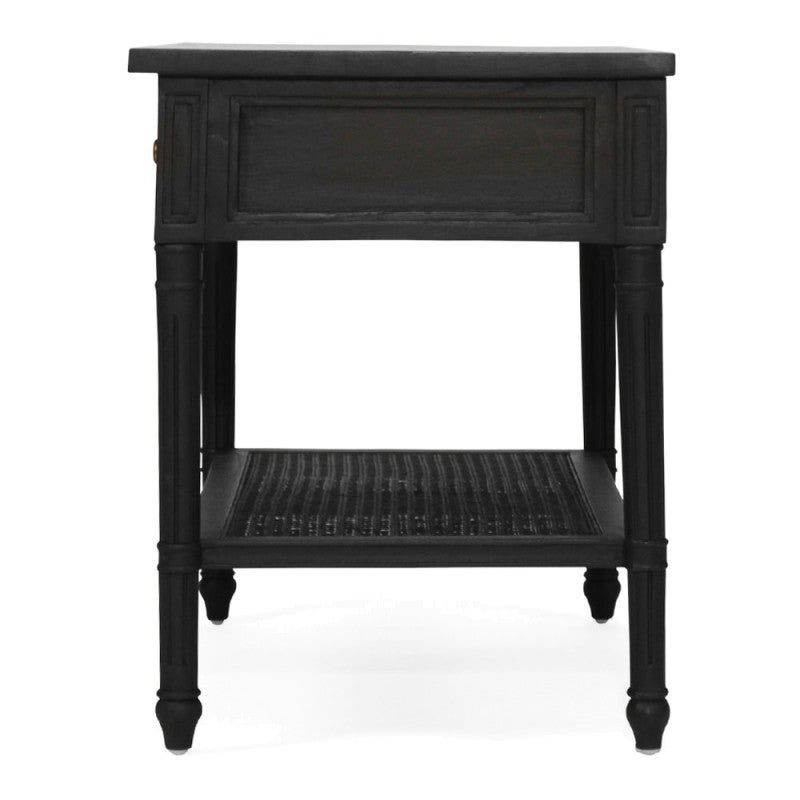The Saman Cane nightstand is a generously wide classic coastal design finished in black finish. It exudes style and sophistication with its classic fluted legs whilst featuring natural cane to add a holiday feel to your bedroom. A classic that could be paired with our matching Harbour cane headboard or our Chippendale headboard. It's up to you! A combination of natural material and textures with classical design features. All structural joins are doweled, screwed and glued.