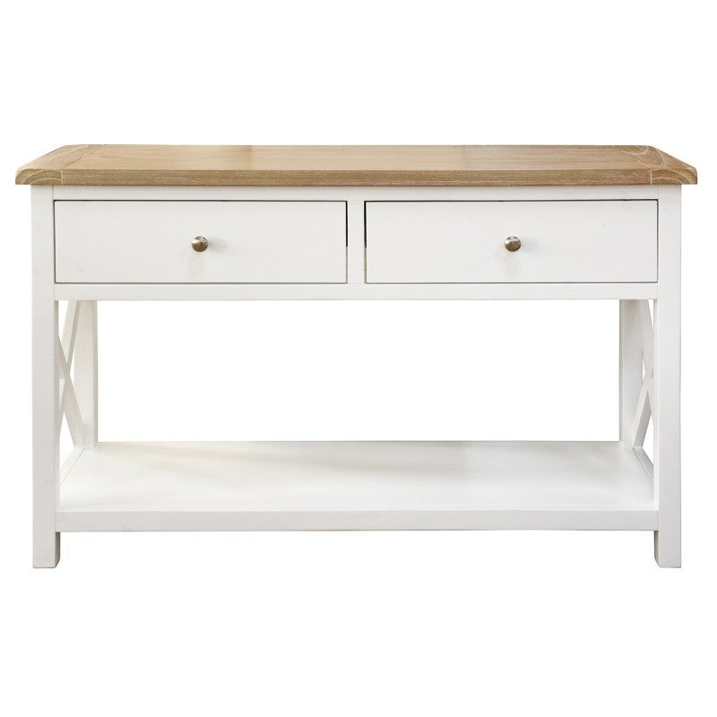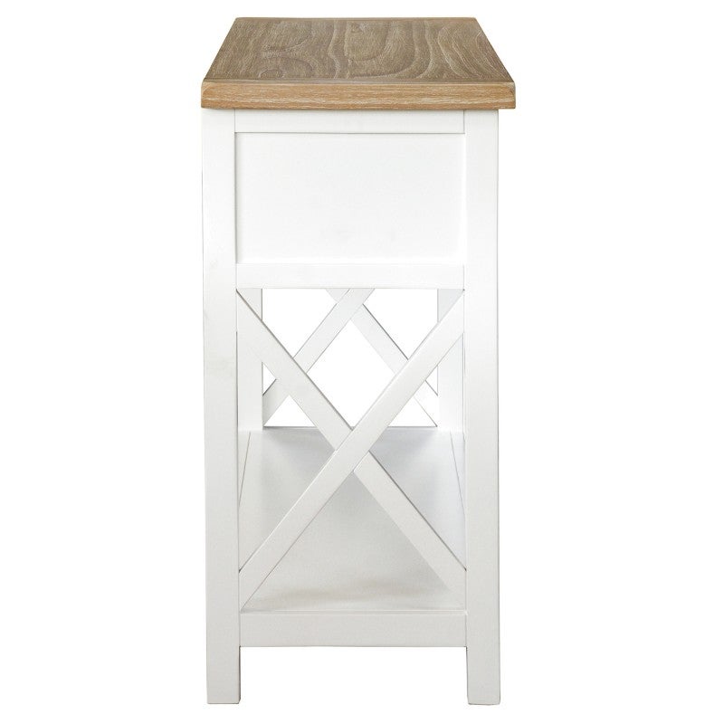 - Hampton inspired style with a white painted finish and contrast natural tops